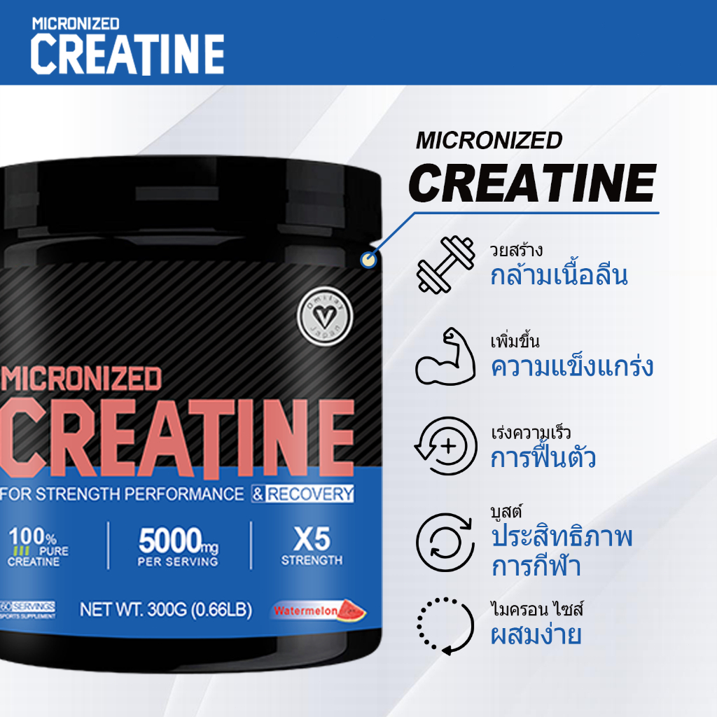 Omilay Creatine Supplement for Men and Women ครีเอทีน Creatine Monohydrate Powder สร้างกล้ามเนื้อฟื้นตัว 300 กรัม