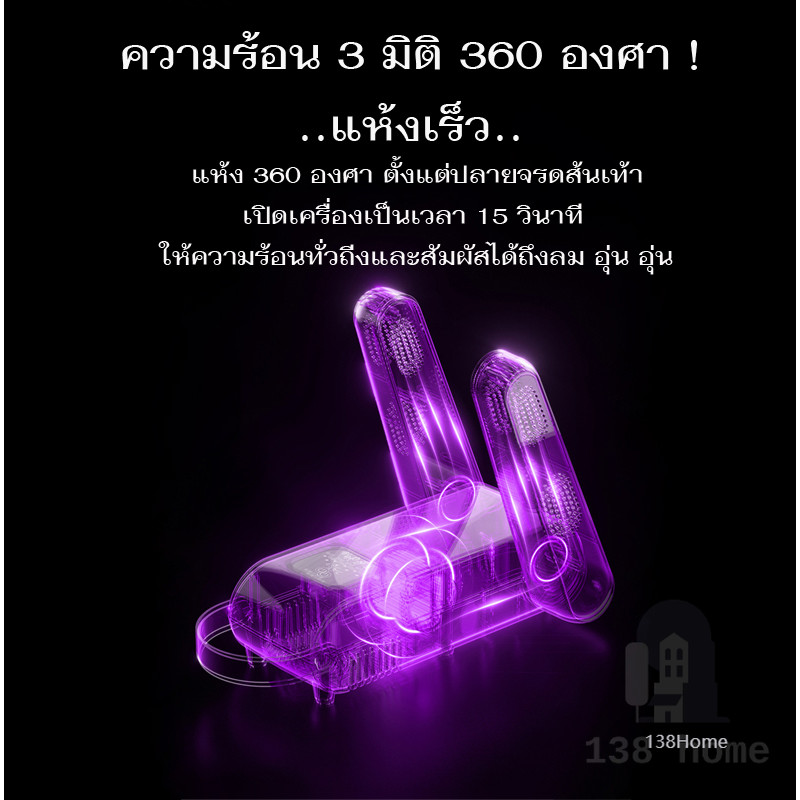 แห้งทันที เครื่องอบรองเท้า กำจัดกลิ่น พับได้ อากาศร้อน 360°ตั้งเวลาปิด ลดแบคทีเรีย เครื่องเป่ารองเท้า ที่เป่ารองเท้า