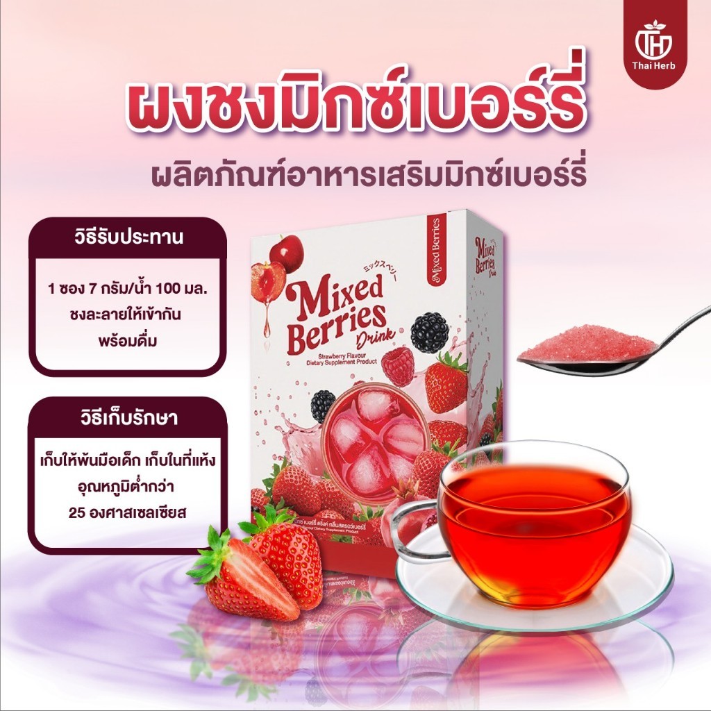 ( ในไลฟ์มีส่วนลด ) มิกซ์เบอร์รี่ + ชากุหลาบ ดริ้งค์ Mixed Berries Drink ตราไทยเฮิร์บ ThaiHerb