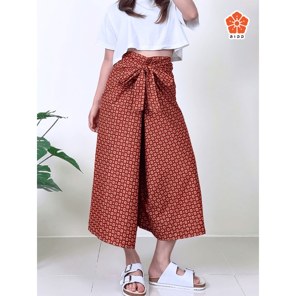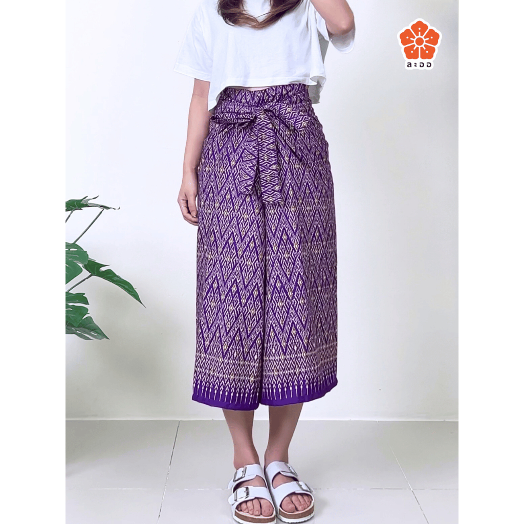 กางเกงเล ขาสั้น 3 ส่วน ขาก๊วย ลายไทย มีเชือกผูก ผ้านิ่ม ใส่สบาย ใส่อยู่บ้าน ร้านนวด ร้านสปา ฟรีไซส์