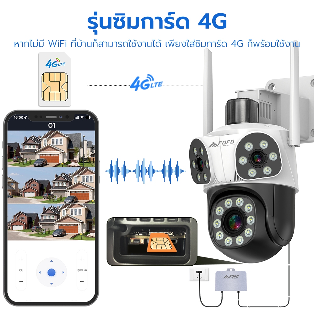 กล้องวงจรปิด 3 เลนส์ ใส่ซิม 4G ความละเอียด 8MP กันน้ำ IP67 ภาพสีกลางคืน กล้องวงจร ซิมการ์ดฟรี
