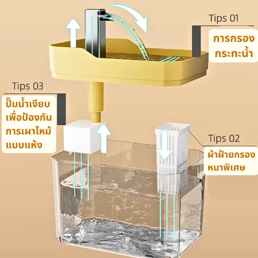 😺น้ำพุแมว น้ำพุแมวไร้สาย น้ำพุสัตว์เลี้ยง 2000ML แมวตู้น้ํา ถังให้น้ำสัตว์เลี้ยง ไร้สายอัตโนมัติ น้ำพุแมว ไร้สาย น้ำพุแ