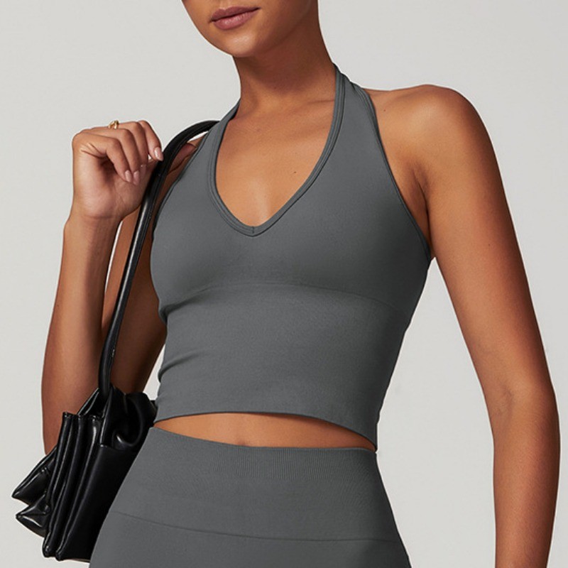 AnranSports Braผู้หญิงs Backless เซ็กซี่ Halter คอวี Breathable Bra Gym ออกกําลังกาย