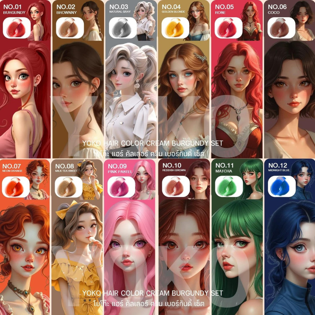 สีย้อม ย้อมผม yoko โยโก๊ะ แฮร์ คัลเลอร์ ครีมYOKO สีย้อมผม Yk เพิ่มการบำรุงผม มีสารสกัดจากธรรมชาติ 100 มล.