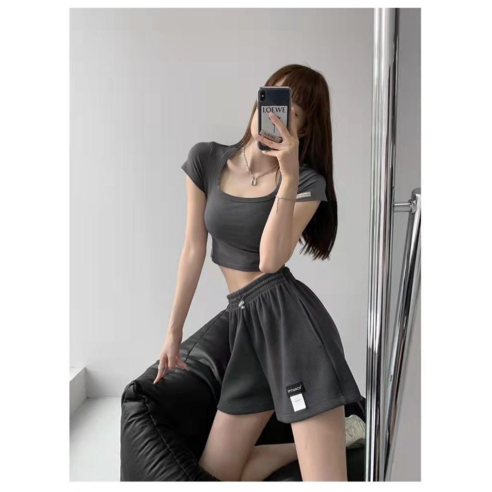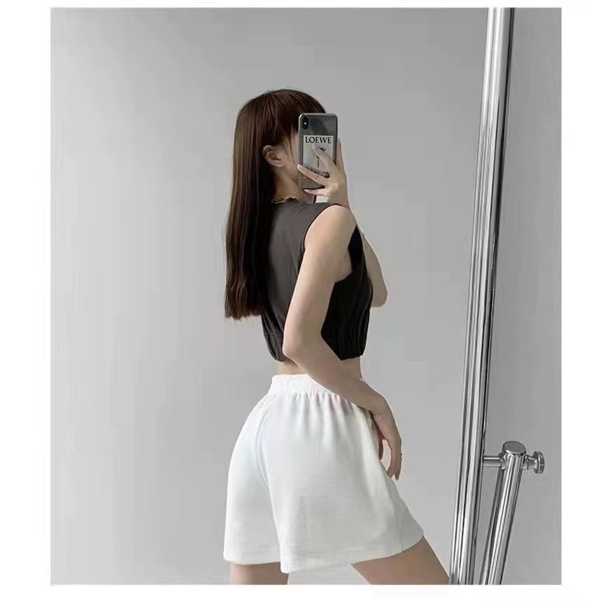 YY64 กางเกงกีฬาขาสั้น เอวสูง ทรงหลวม แฟชั่นสําหรับสตรี