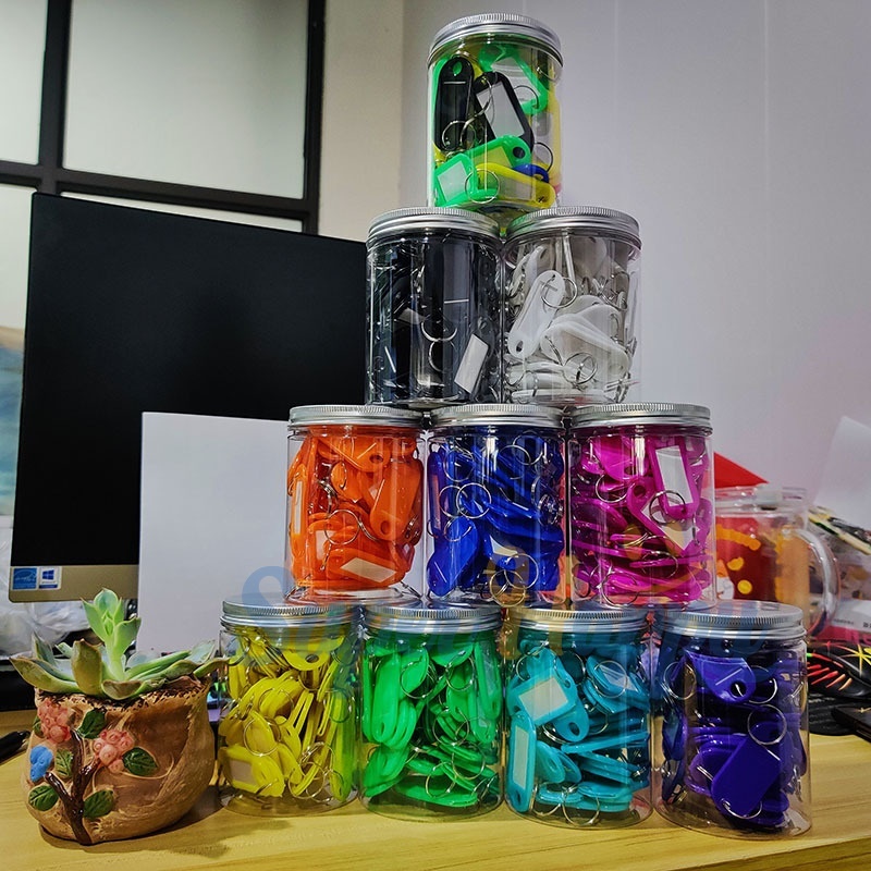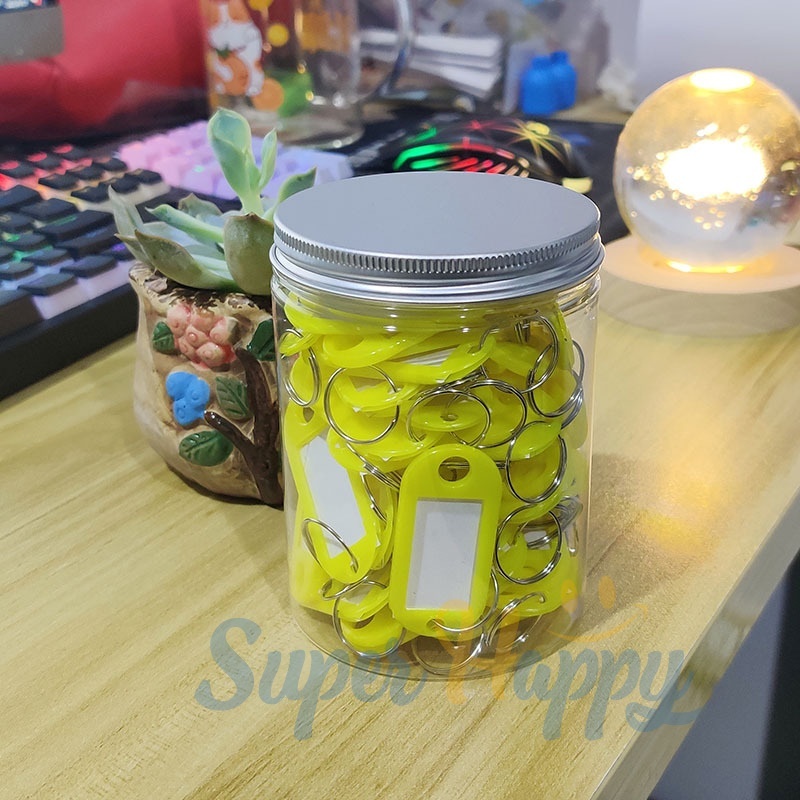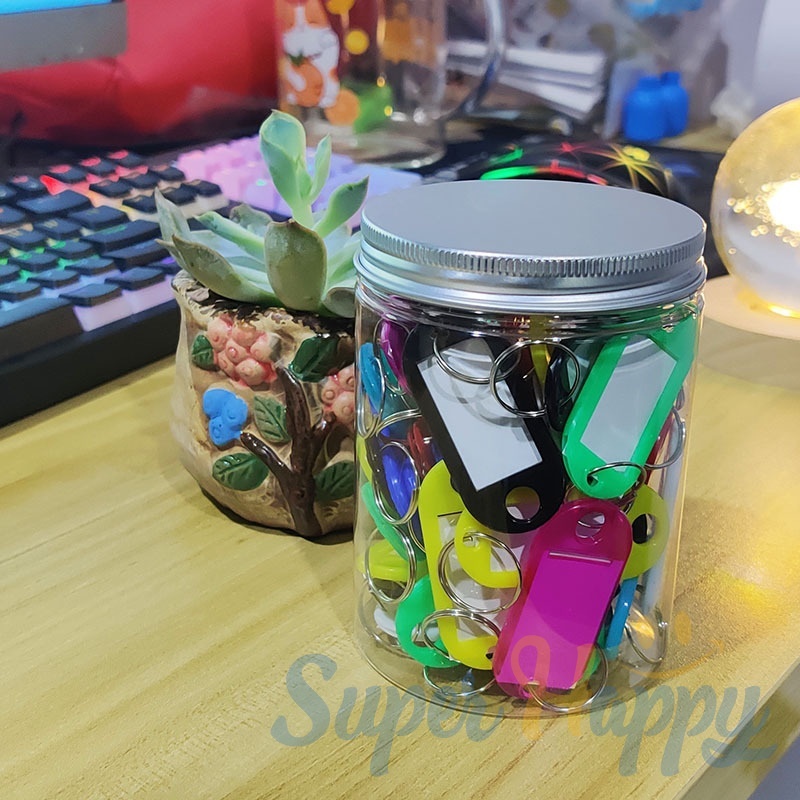 พวงกุญแจป้ายชื่อ(แพ็ค50ชิ้น) พร้อมกล่องพลาสติกฝาเกลียว แท็กป้ายชื่อ Key Chain Tag