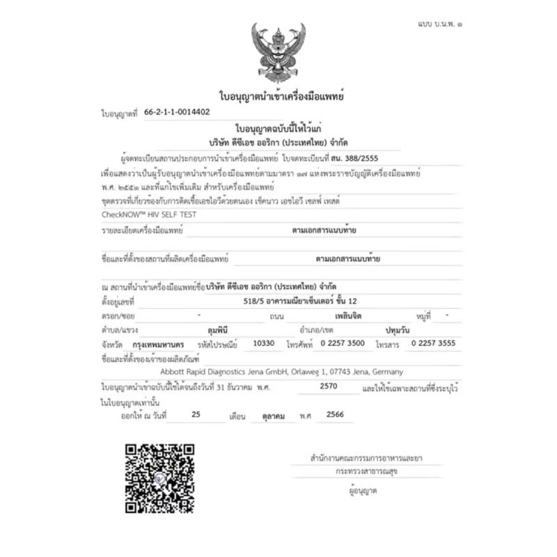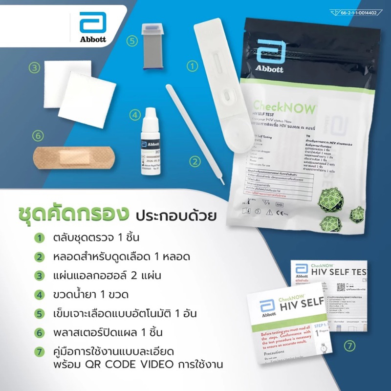ชุดตรวจคัดกรอง HIVด้วยตัวเองCheckNOW ABBOTT (ใช้เลือดปลายนิ้ว)