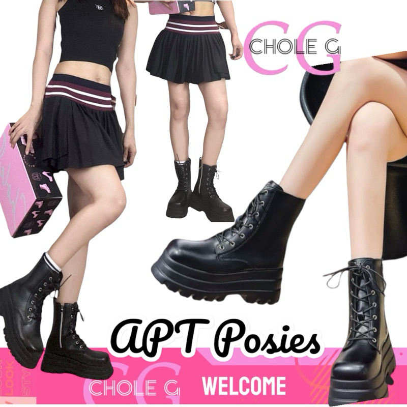 Chole G:APT Posies Combat Boots size 37-42 รองเท้าบูทเกาหลี ส้นสูง 7cm (SH0162)