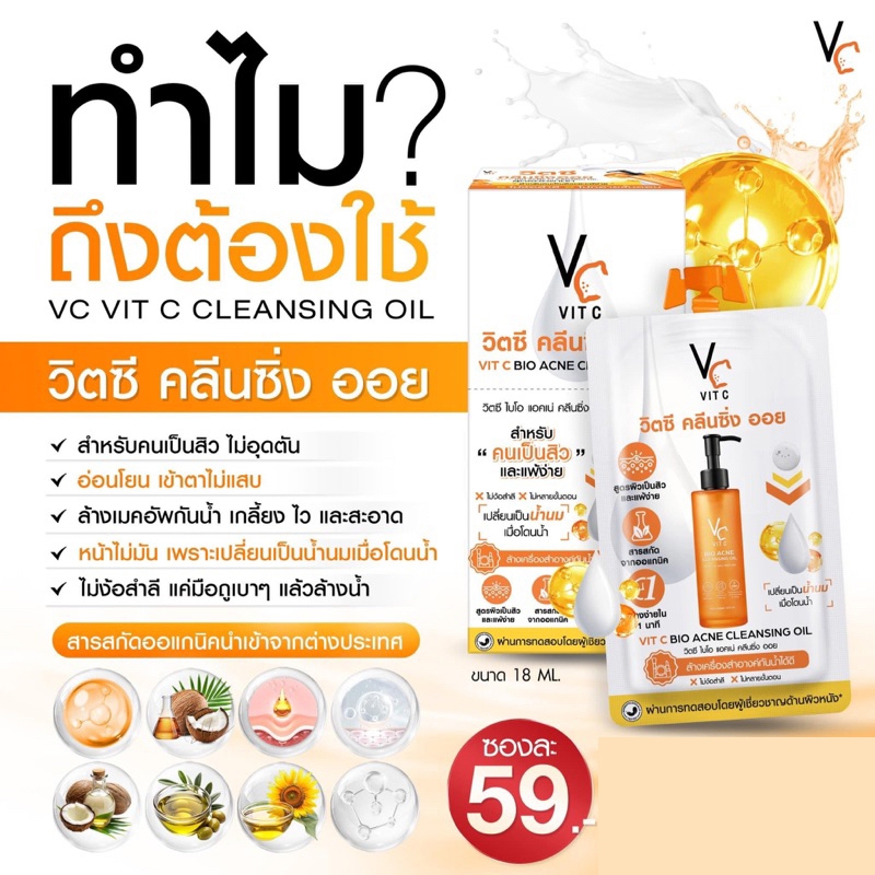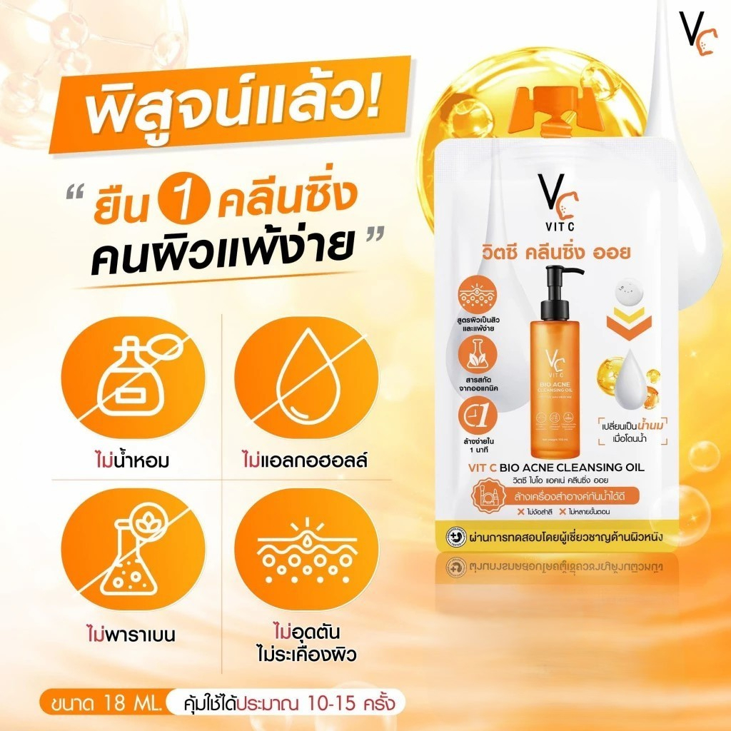 [3 ซอง] Ratcha Vit C Bio Acne Cleansing Oil [18 ml.] ทำความสะอาดผิว คลีนซิ่ง ออย