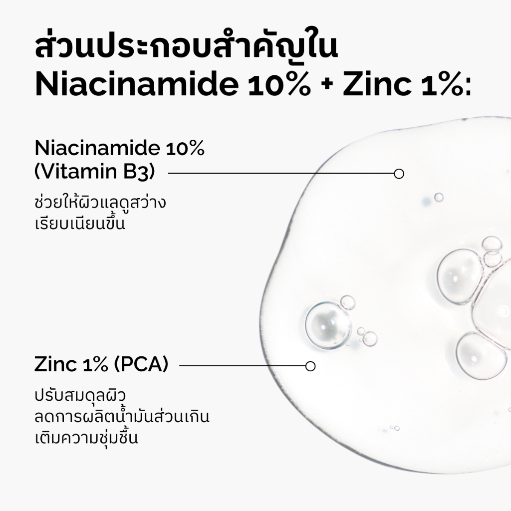 The Ordinary Niacinamide 10% + Zinc 1% - 30/60mL | เซรั่มลดการเกิดสิว กระชับรูขุมขน ลดความมัน ผิวแลดูกระจ่างใส