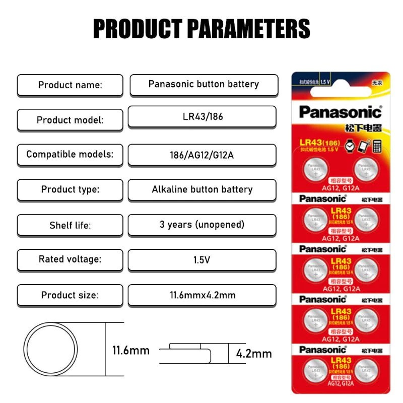 Panasonic 1.5V เซลล์ปุ่ม LR41/LR44/LR1130 แบตเตอรี่อัลคาไลน์ เหมาะสําหรับรีโมทคอนโทรลรถยนต์ เครื่องคิดเลข รถของเล่น นาฬิกา เครื่องชั่งอิเล็กทรอนิกส์ขนาดเล็ก