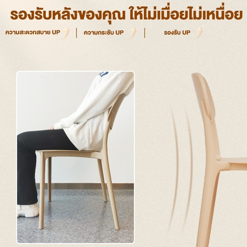 【14 สีให้เลือก】เก้าอี้ เก้าอี้กินข้าว เก้าอี้พลาสติก เก้าอี้พลาสติกมีพนักพิง สไตล์เรียบง่าย วางซ้อนกันได้ สีต่างๆ ราคาถ
