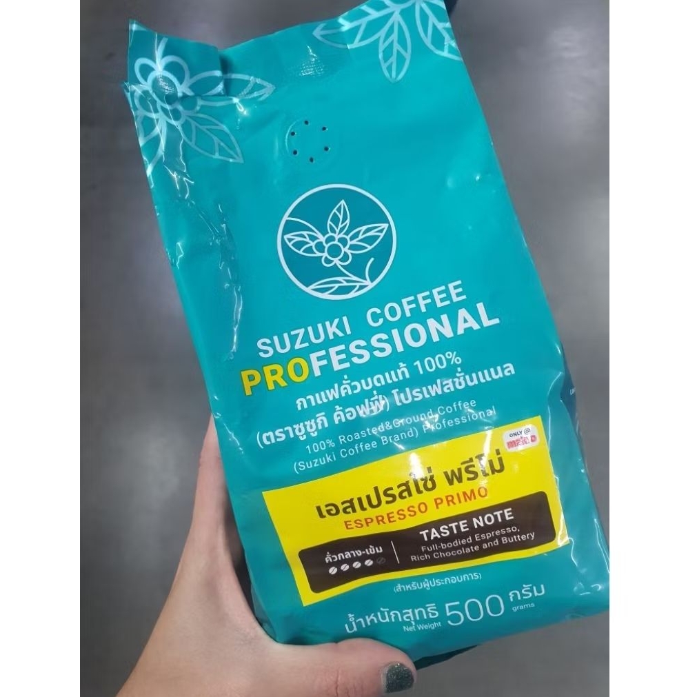 ซูซูกิ เอสเพรสโซ่พรีโม่ 500 ก. เมล็ดกาแฟคั่วกลาง-เข้ม ชนิดบดและชนิดเม็ด