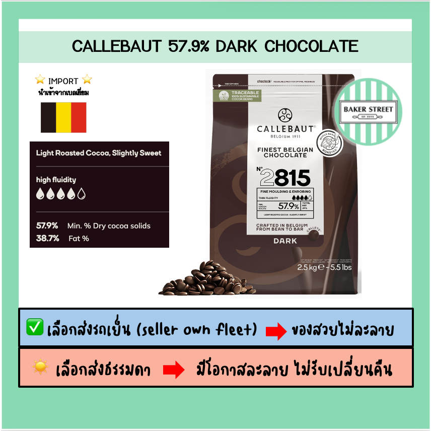 ช็อกโกแลตแท้ Callebaut แบ่งขาย 200-500 g ⭐️ถ้ากลัวละลายเลือกส่งรถเย็นนะคะ⭐️