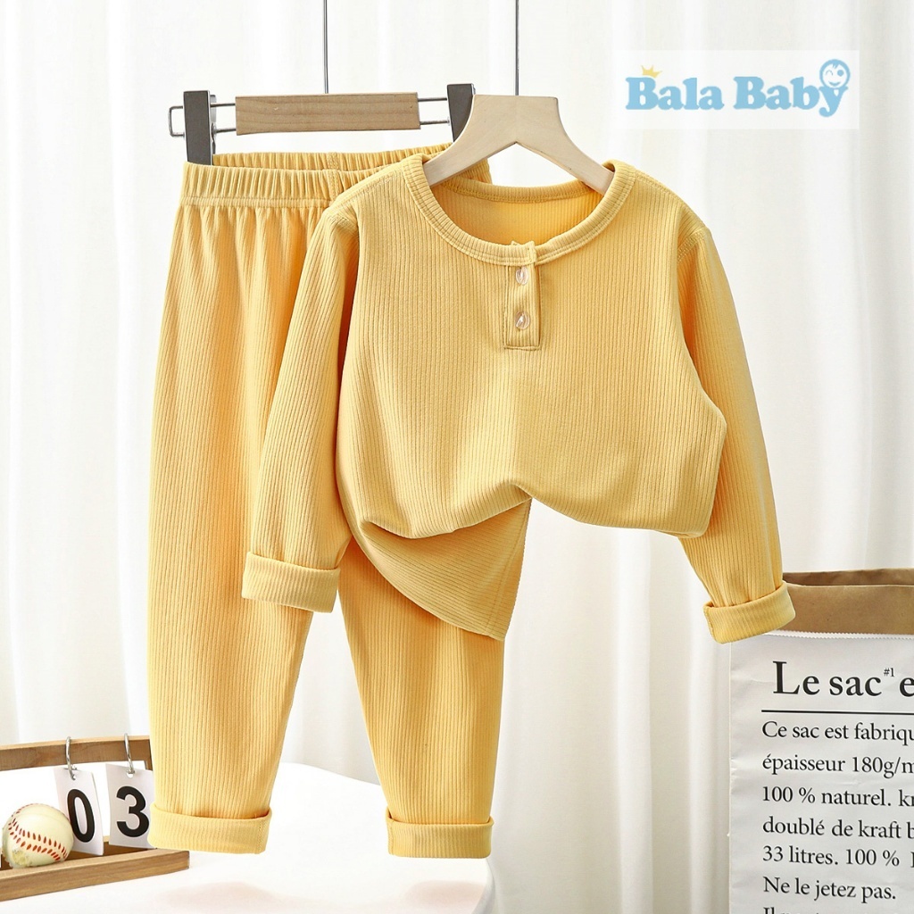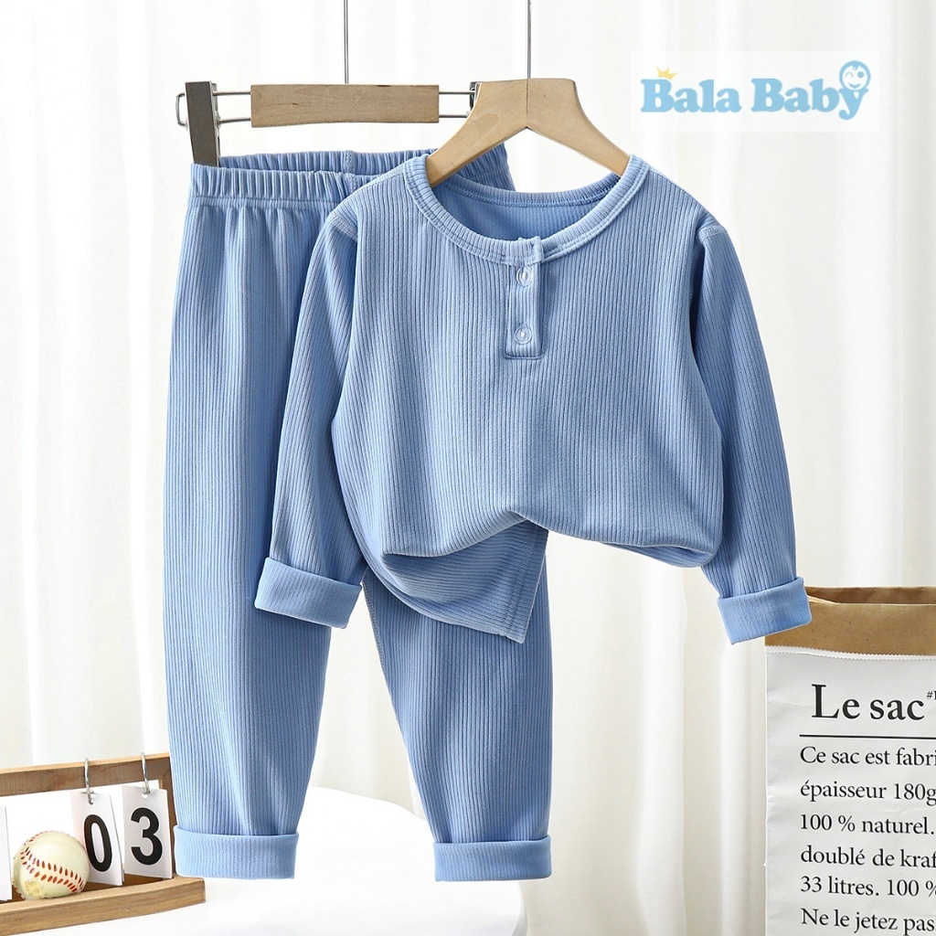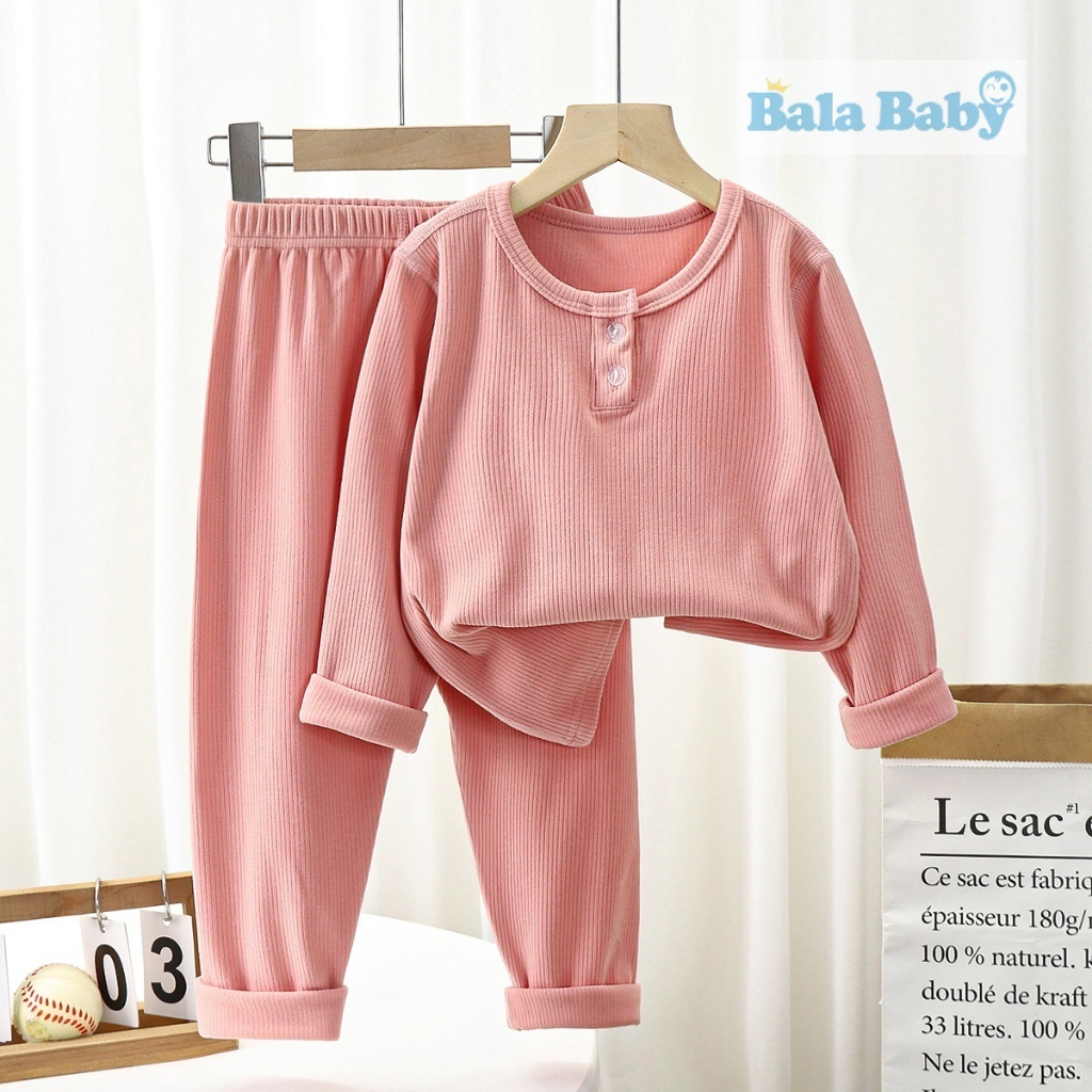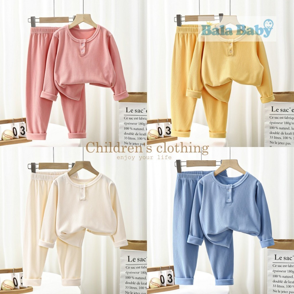 ชุดนอนเด็ก ชุดนอนผ้าร่อง เสื้อแขนยาว+กางเกงขายาว เสื้อผ้าเด็กสีพื้น Size80-110cm CXT26