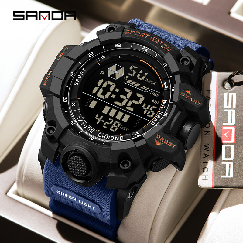 ซานดา ใหม่เต็มหน้าจอนาฬิกาอิเล็กทรอนิกส์แนวโน้มมัลติฟังก์ชั่กันน้ําไฟกลางคืนนาฬิกาผู้ชาย SD6229-11