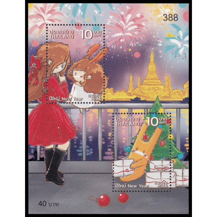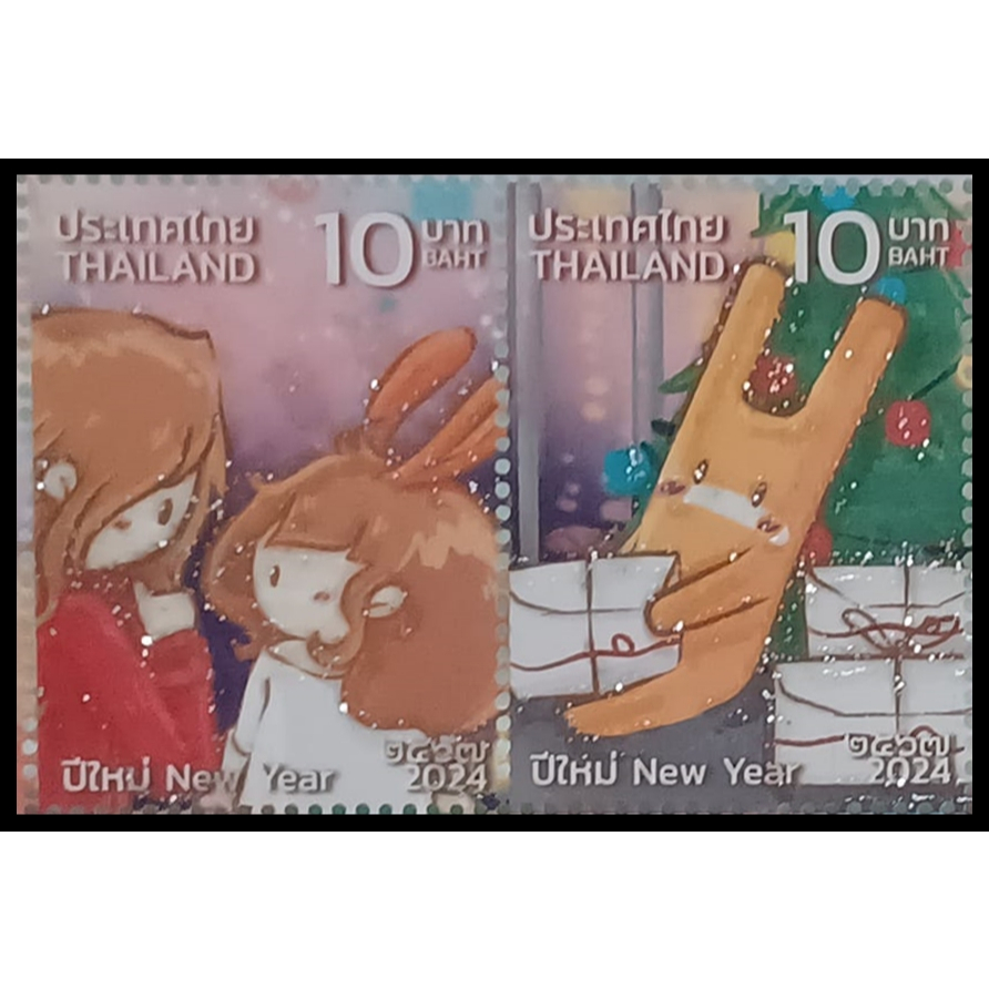 B767 แสตมป์ไทยยังไม่ได้ใช้ ชุด ปีใหม่ 2568 "Huuyaow น้องหูยาว" (ชุดที่37) ออกปี 2567 (ยังไม่ใช้) สภาพดี ครบชุด 2 ดวง