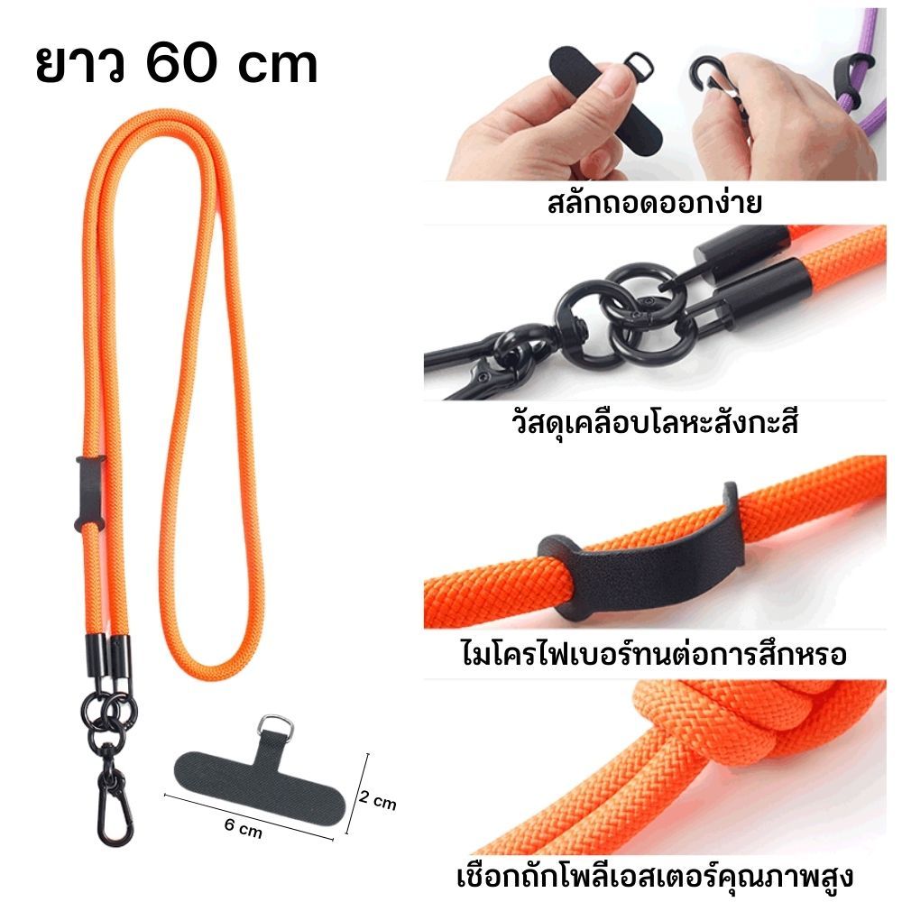 สายคล้องโทรศัพท์ คล้องคอ/สะพายคลอสบอดี้ ยาว 60 ซม. สีสันสดใส พกพามือถือได้สะดวก พร้อมส่ง!!!
