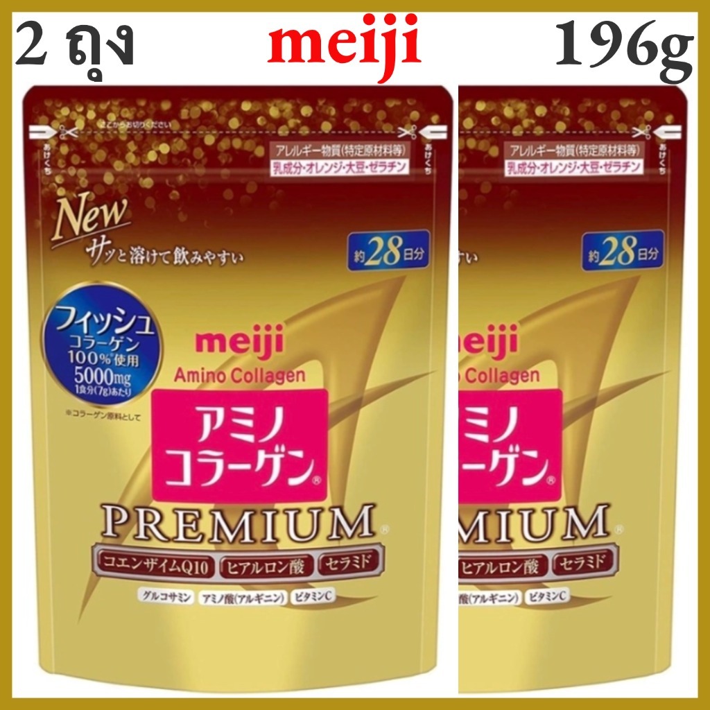 💕EXP:09/27💕2 ขวด Meiji Amino Collagen Power Premium 28day/196g/5000mg เพิ่ม เซรามิโดะ+Hyaloronich COQ10 Vitamin C