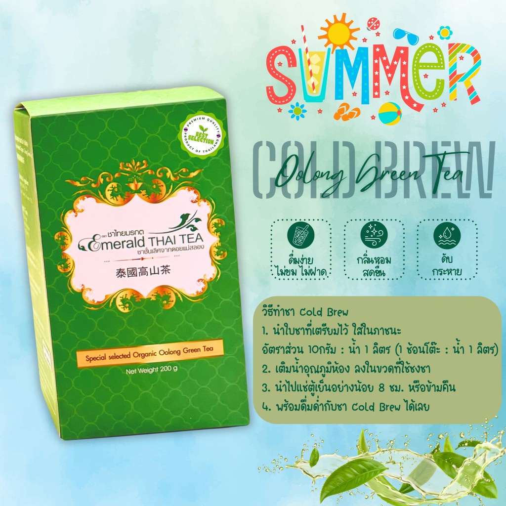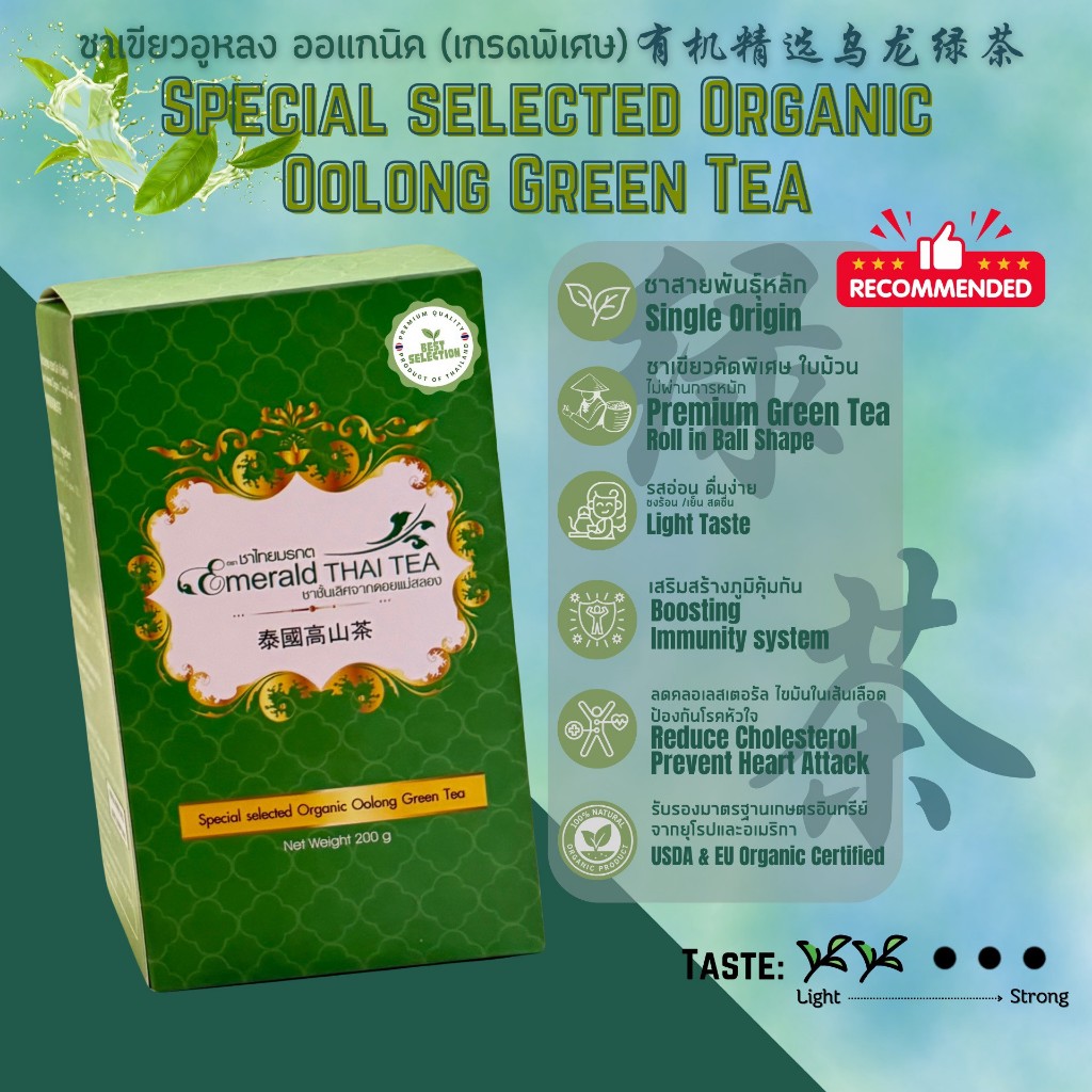 ชาเขียวอูหลง (เกรดพรีเมี่ยม) ออแกนิค Organic Oolong Green Tea ดื่มง่าย - ตรา ชาไทยมรกต ใบชาโชคจำเริญ