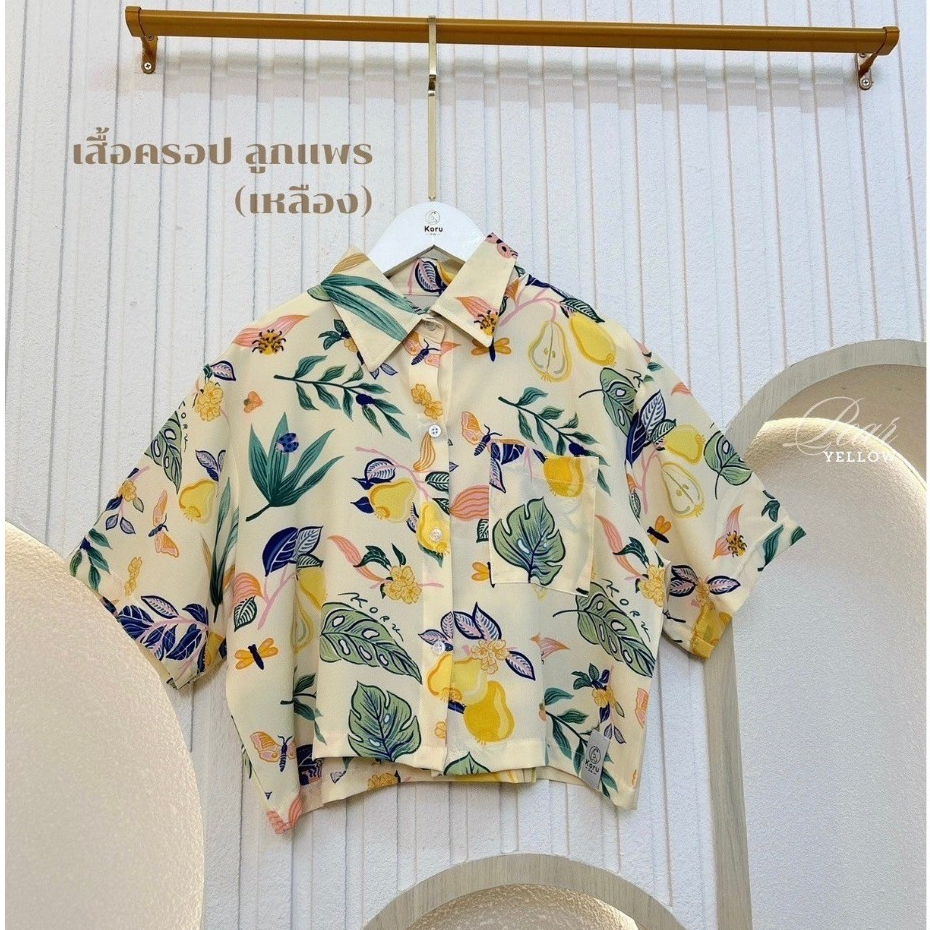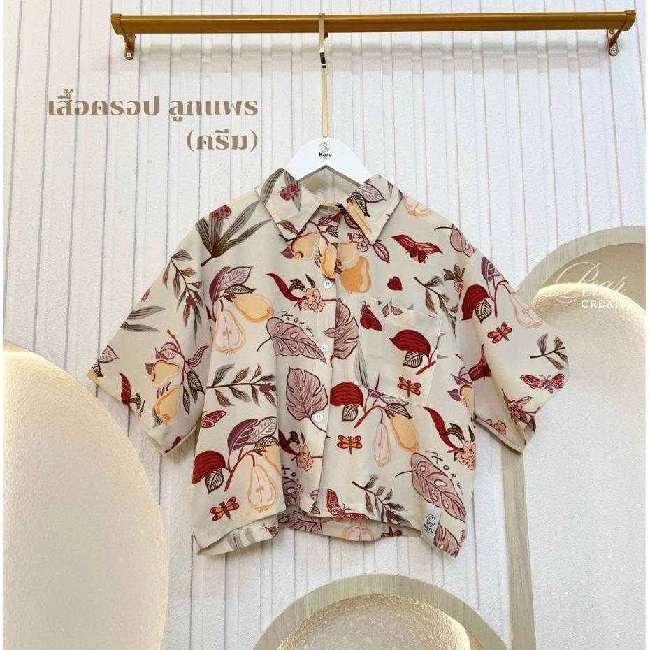 KORU เสื้อครอป ลายลูกเเพร (ความยาว 20" )