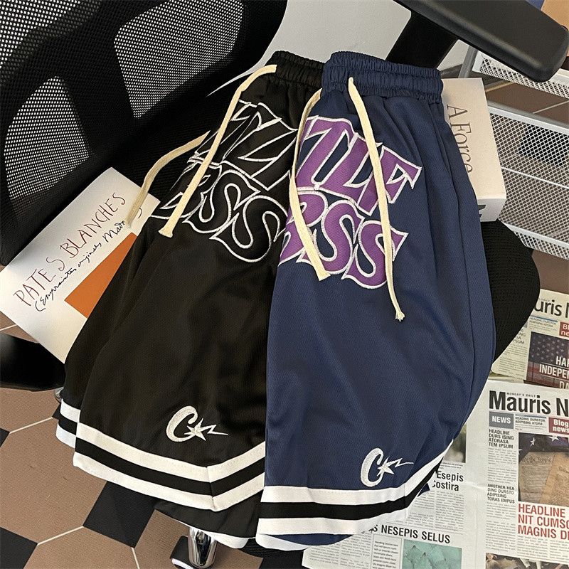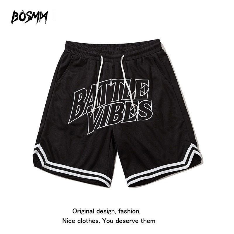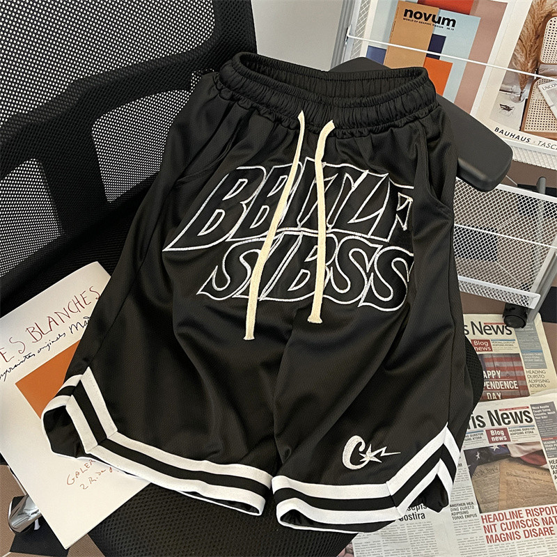 กางเกงขาสั้นพิมพ์ลายตัวอักษร กางเกงกีฬาขาสั้น กางเกงบาส ดีไซน์เชือกรูด ผ้านุ่มระบายอากาศได้ดี ไซส์ ม-3เอ็กแอล