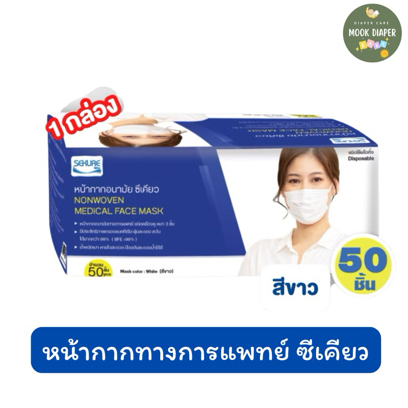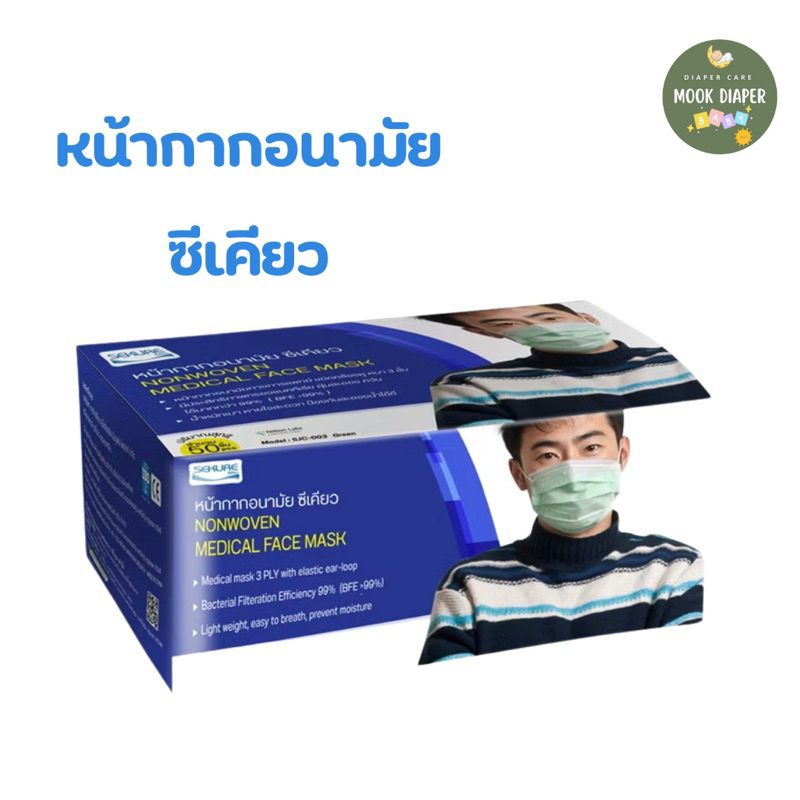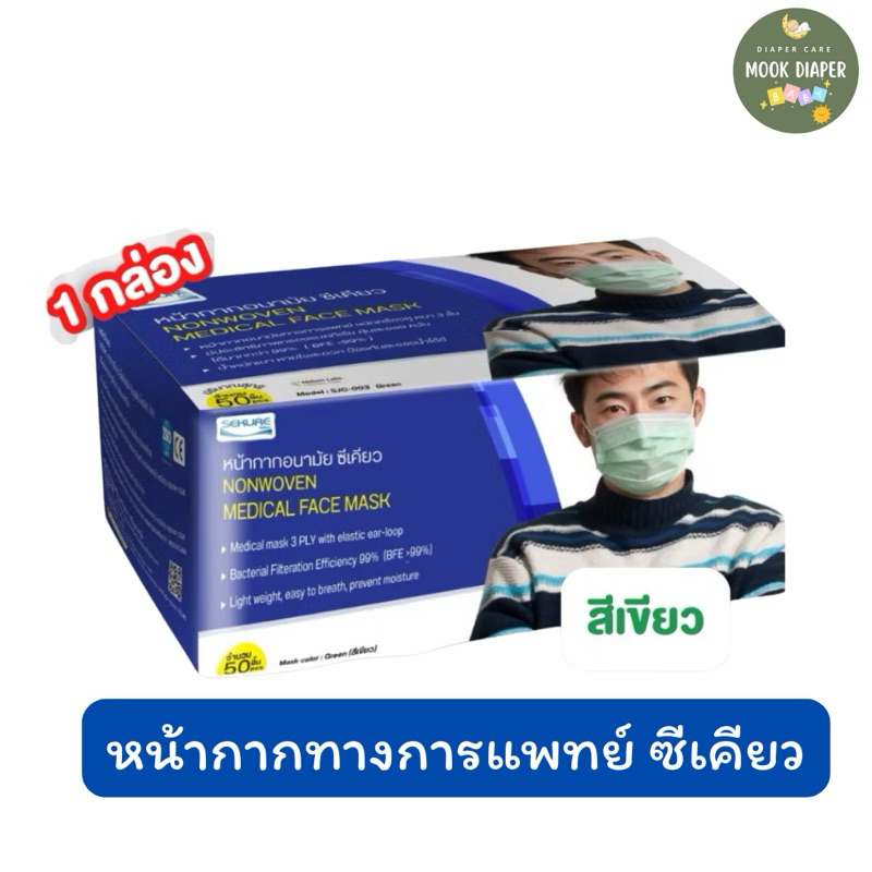 หน้ากาก อนามัย ทางการเเพทย์ SEKURE 1 กล่อง 50 ชิ้น สีเขียว / พร้อมส่ง