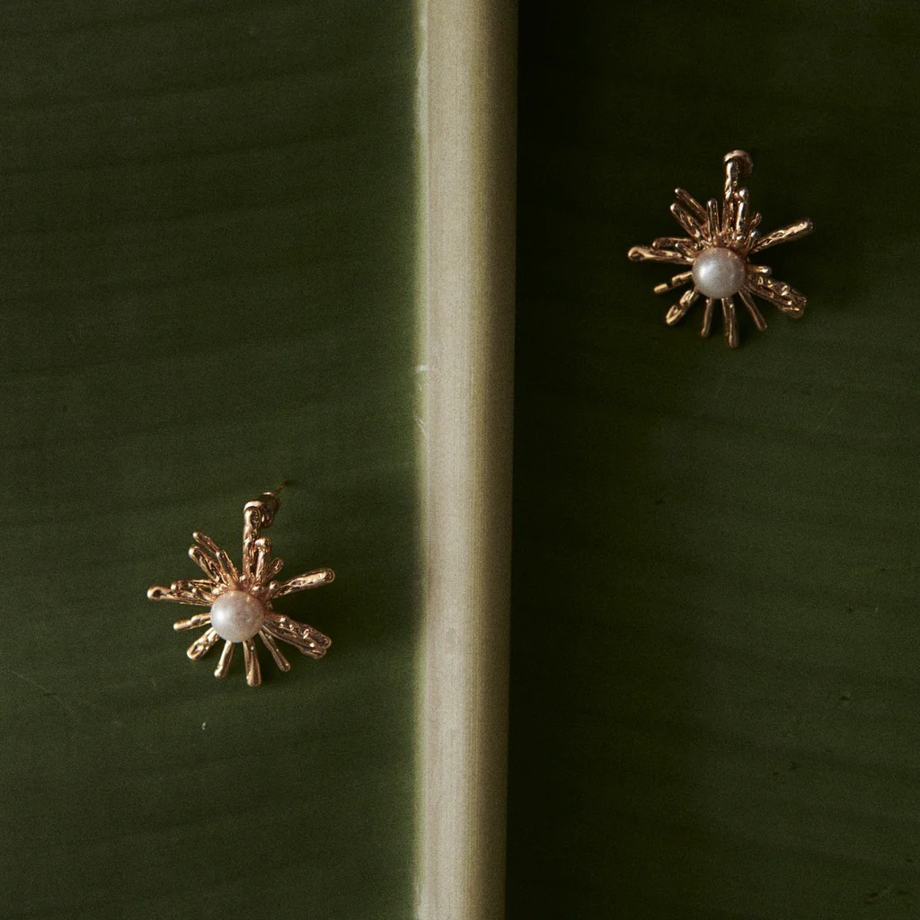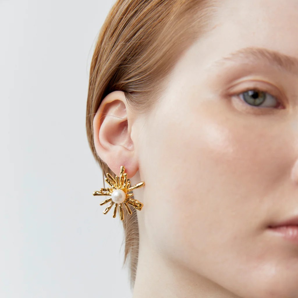 NAKAMOL - WHITE PEARL STARBURST GOLD EARRINGS ต่างหูมุกทรงดาว