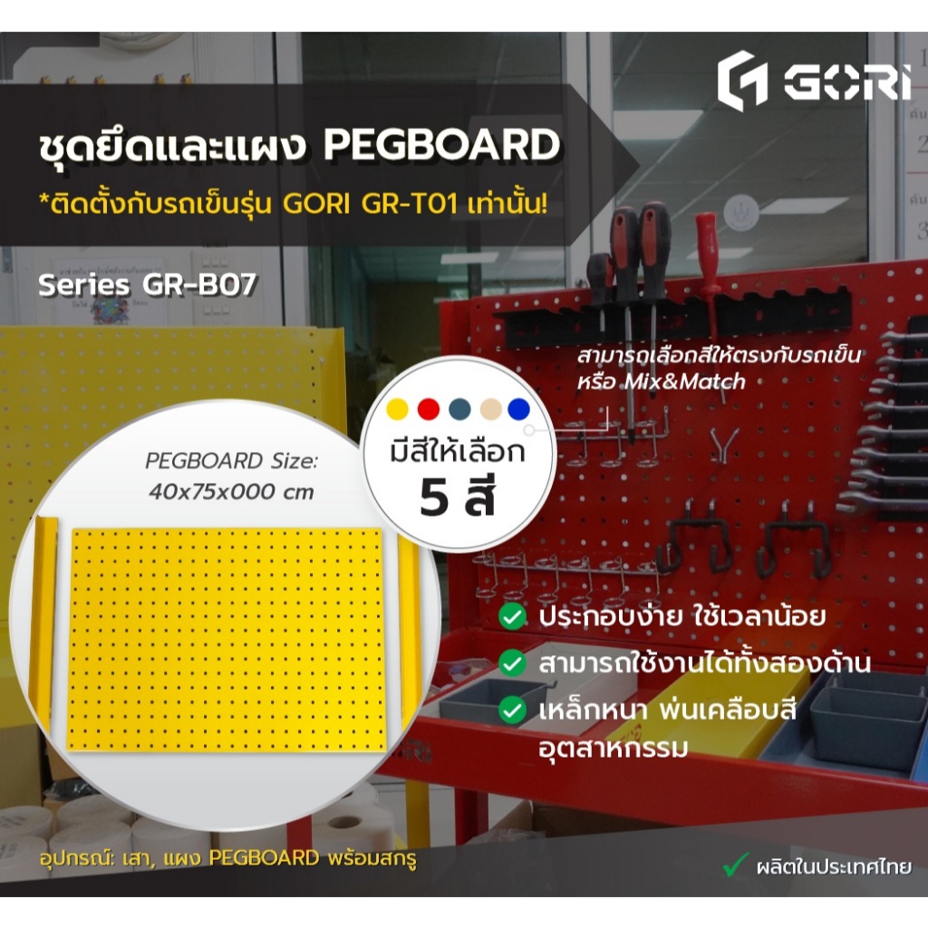 GORI ชุดยึดและแผง PEGBOARD สำหรับรถเข็น GR-T01 มีให้เลือก 5 สี
