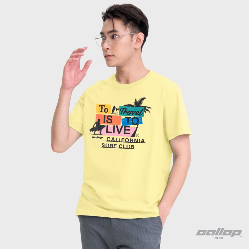 GALLOP : Graphic Tee เสื้อยืดพิมพ์ลาย ผ้าคอตตอนผู้ชาย รุ่น GT9206 สี Celestial Yellow / ราคาปกติ 990.-