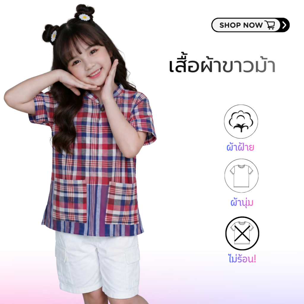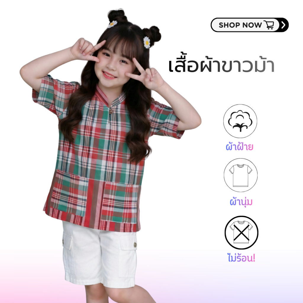 ชุดพื้นเมืองผ้าขาวม้า(คอจีน) เด็กน่ารักใส่สบาย