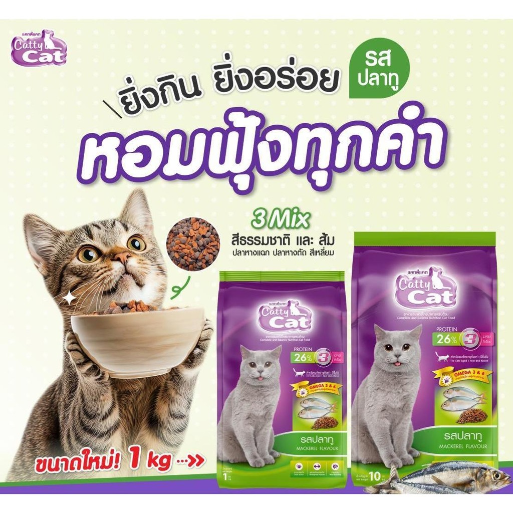 [[จำนวน 10 ถุง]]n อาหารแมว catty cat โปรตีน26% ขนาด1กิโลกรัม*ถุงจากโรงงาน*#FT