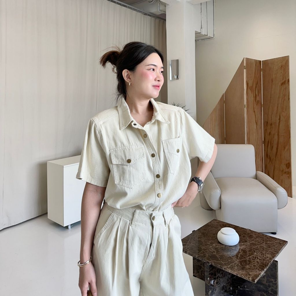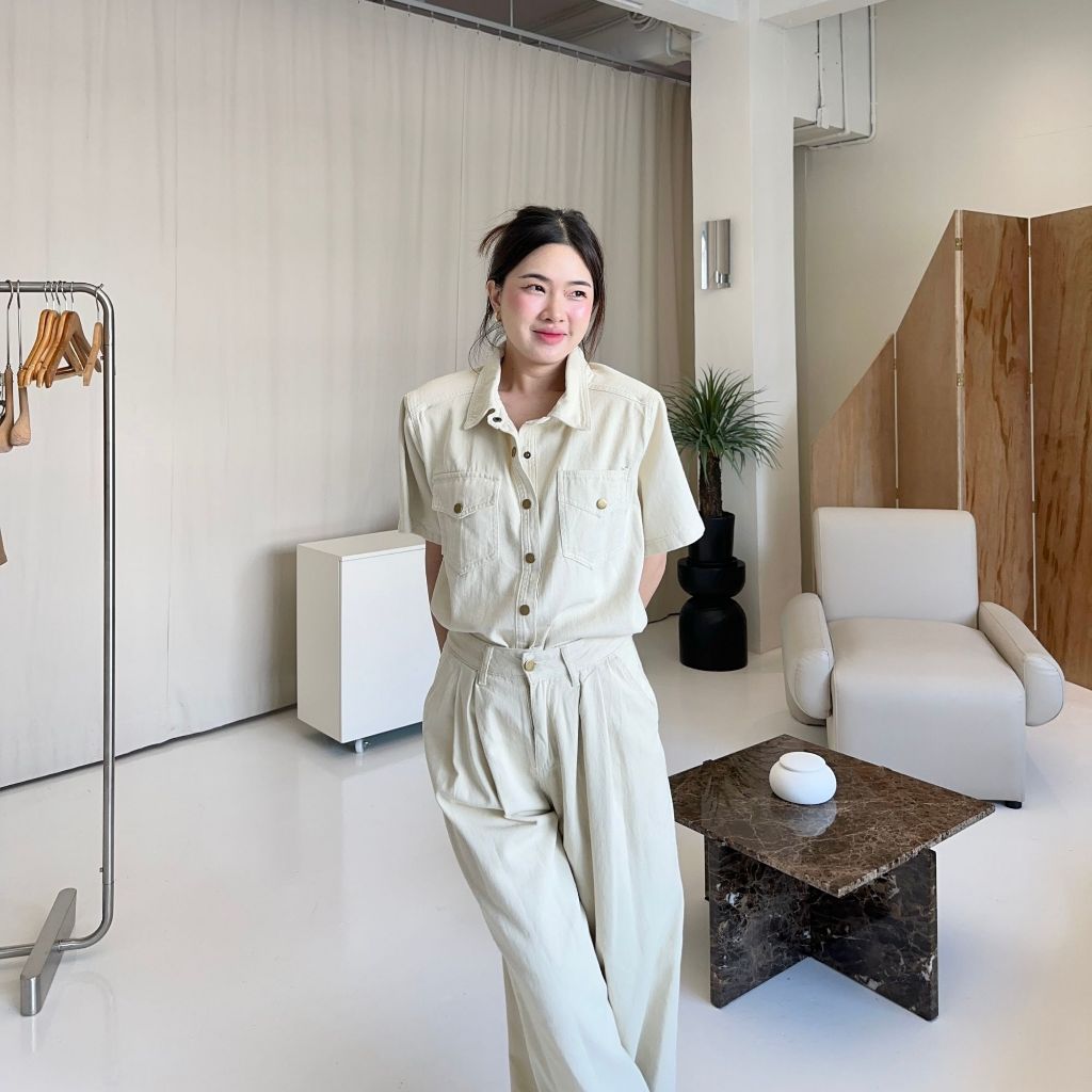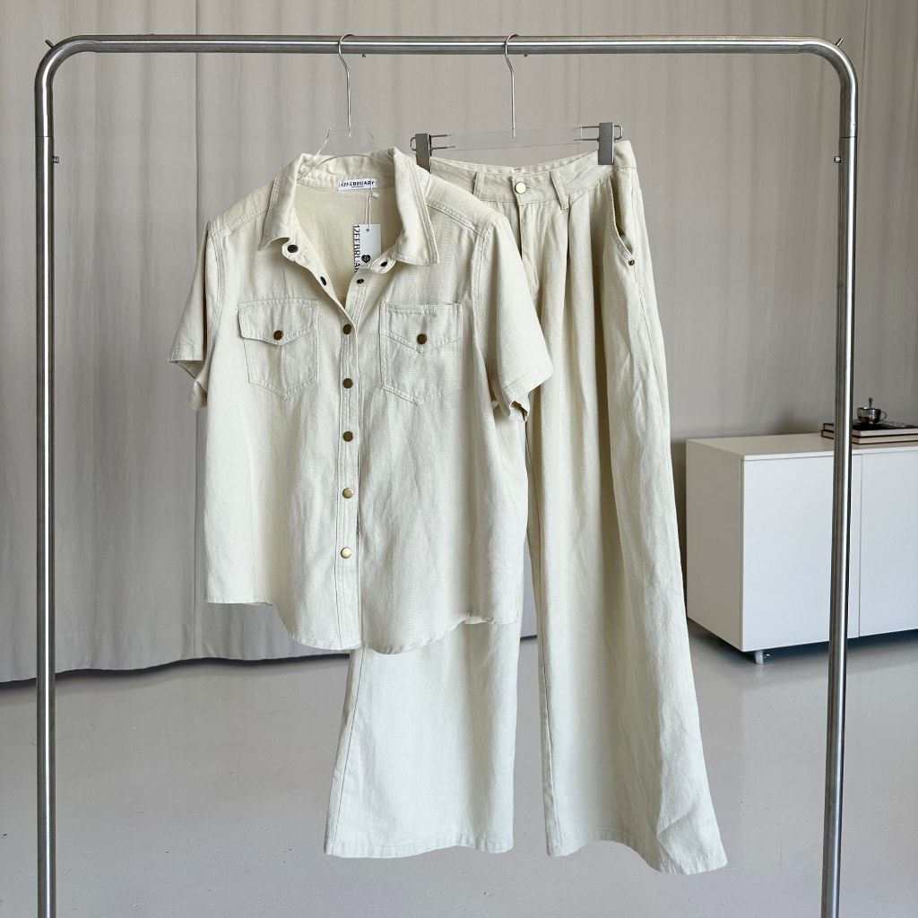 12FEBRUARY | LORA SET ชุดยีนส์เข้าเซ็ต เสื้อเชิ้ตแขนสั้น + กางเกงขากว้าง