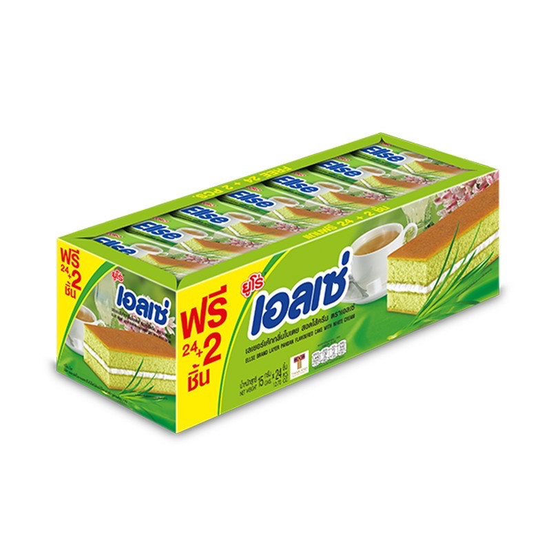 ขนม เอลเซ่ Ellse ยกกล่อง เลเยอร์เค้ก สอดไส้ครีม ใบเตย วานิลา ช็อกโกแลต สตรอเบอร์รี่ กล้วยหอม