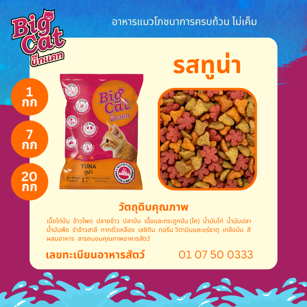 บิ๊กแคท (7กก) BIG CAT อาหารแมวโตโภชนาการครบถ้วน ไม่เค็ม