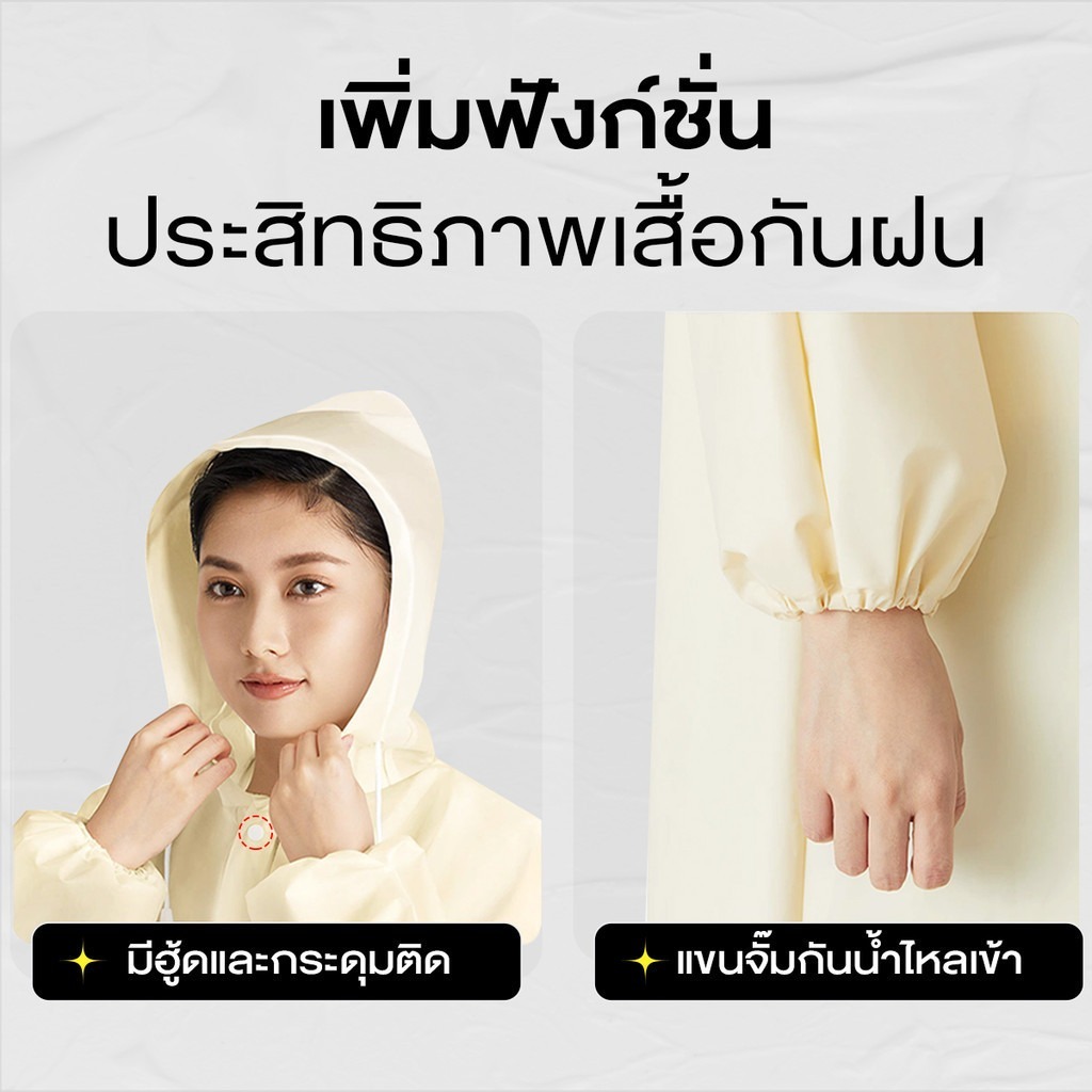 Cometเสื้อกันฝน เสื้อกันฝนแฟชั่น PEVA เสื้อกันฝนผู้ใหญ่ ไม่มีฝนรั่ว หนาขึ้น ทนและมีน้ำหนัพับเก็บง่าย