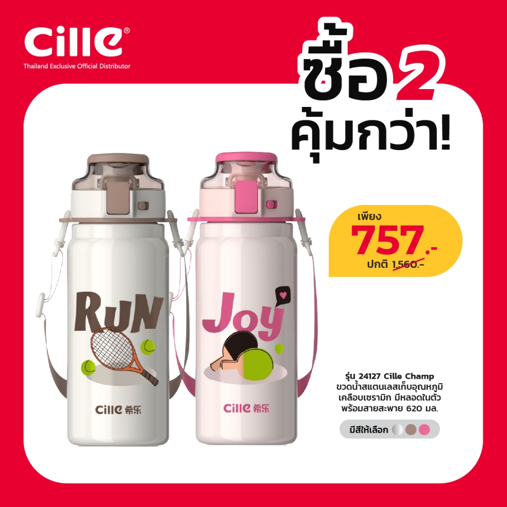 [รับประกัน 1 ปี] Cille Champ กระติกน้ำเด็ก เก็บอุณหภูมิ สแตนเลส 304 เคลือบเซรามิก Ceramic Vacuum Bottle 620ml รุ่น 24127