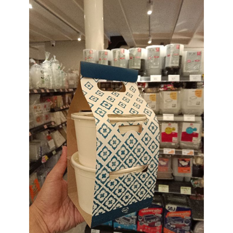 Fest ชุดสายคาดปิ่นโตลายคราม พร้อมชามอาหาร850มล.สีขาว รวมฝาปิด (ปิ่นโตใส่อาหาร)
