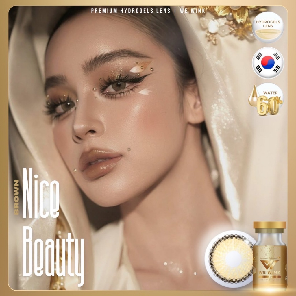 WeWinkฝาทอง มีค่าสายตา อมน้ำ60% [ตาไม่แห้งเจ็บ] ขนาดกลาง กันรังสี คอนแทคเลนส์ไฮโดรเจล วีวิงค์ คอนแทคเลนส์สีน้ำตาล