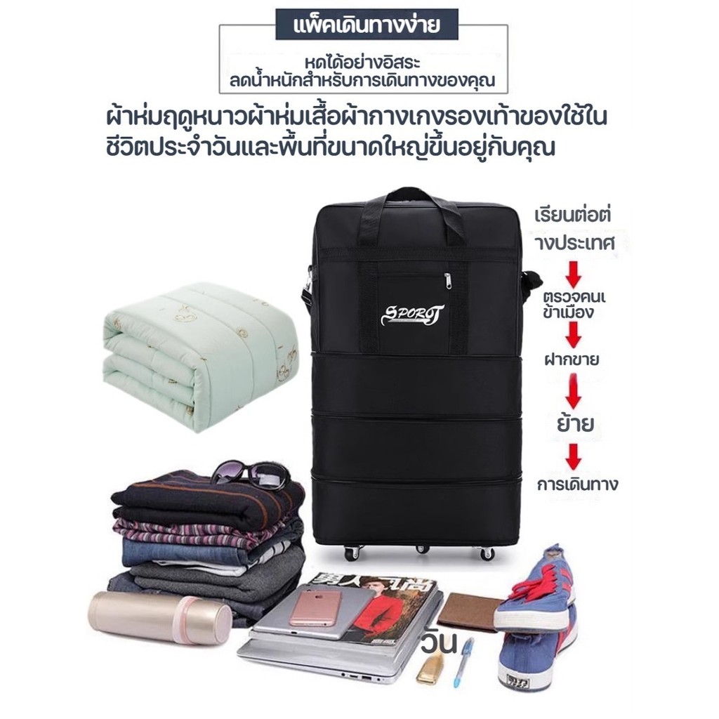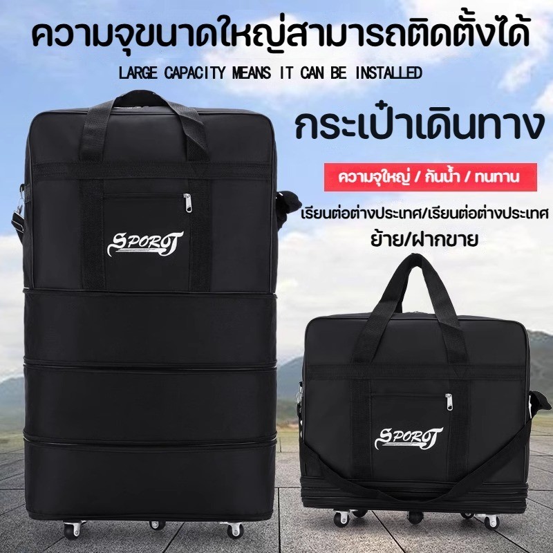 COD🎁กระเป๋าเดินทางพับได้ 4ชั้น 27/32/42 นิ้ว มีล้อลากหมุนได้ 360 องศา 5ล้อ ผ้ากันน้ำ Oxford หนา มีสายลาก กระเป๋าเดินทาง