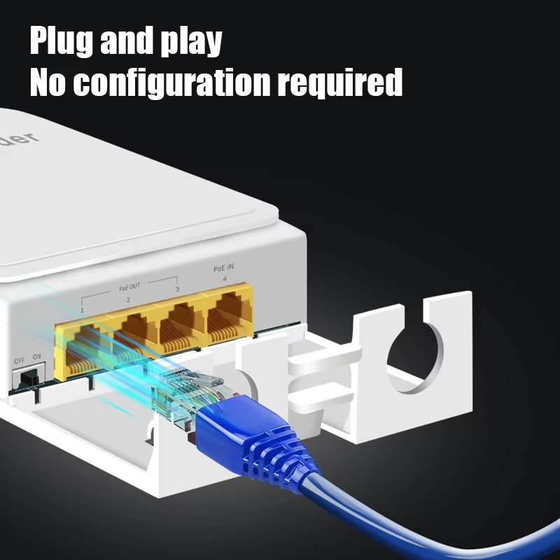 🚚ท้องถิ่น🚚 4 พอร์ต 100/1000Mbps กันน้ํา PoE Repeater 1 ถึง 3 สวิตช์เครือข่าย PoE Extender สําหรับ IPC/NVR
