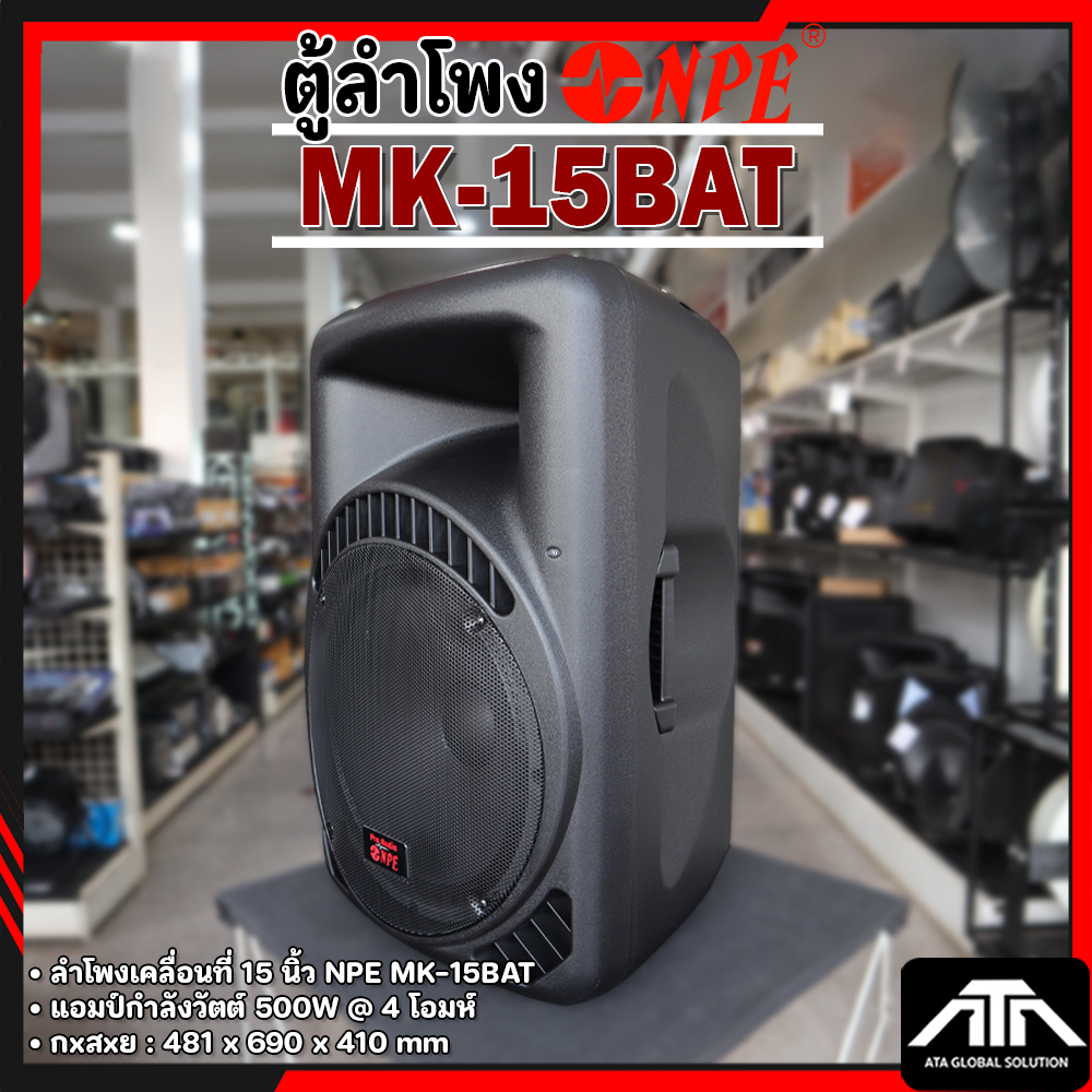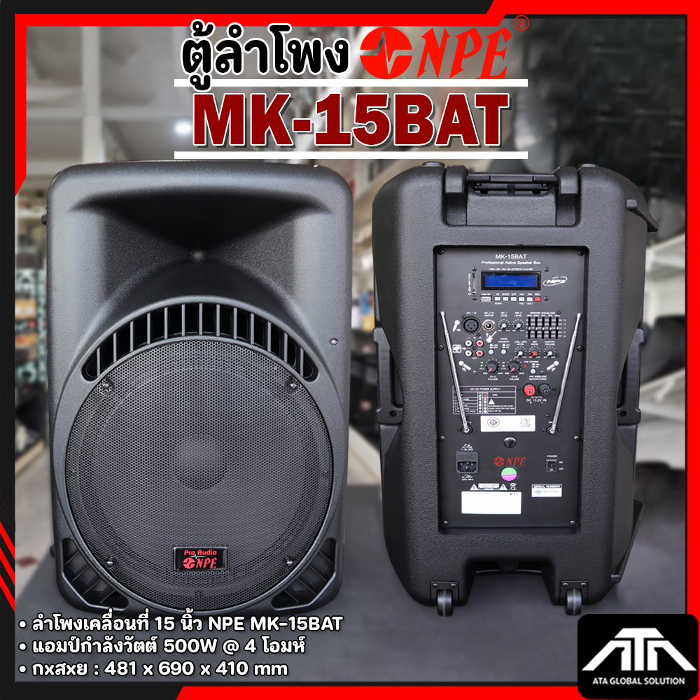 NPE ตู้ลำโพงมีแอมป์ MK 15BAT BLUETOOTH USB FM RECORD พร้อมไมค์ 2 ตัว มีแบตในตัวชาจได้ มีล้อลาก