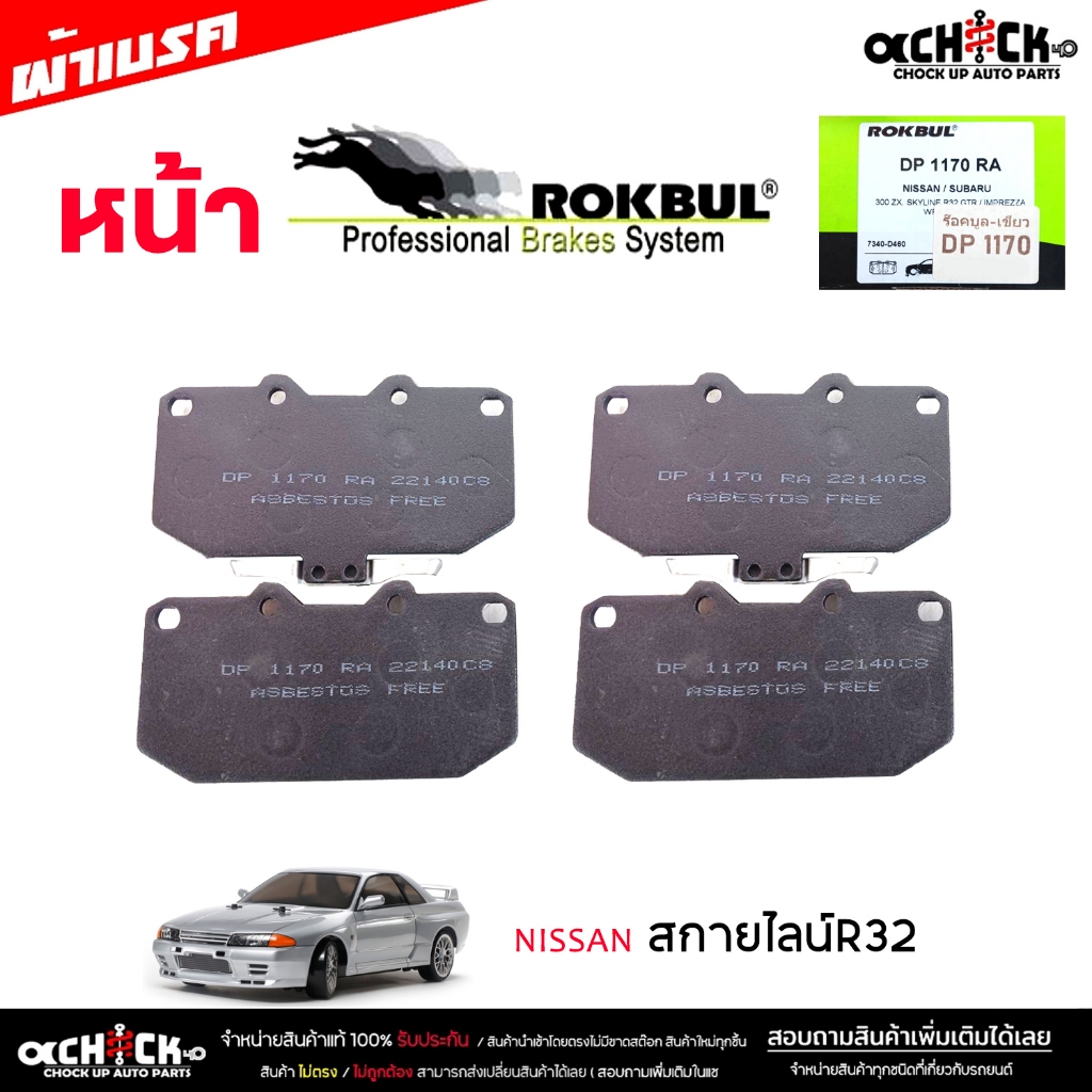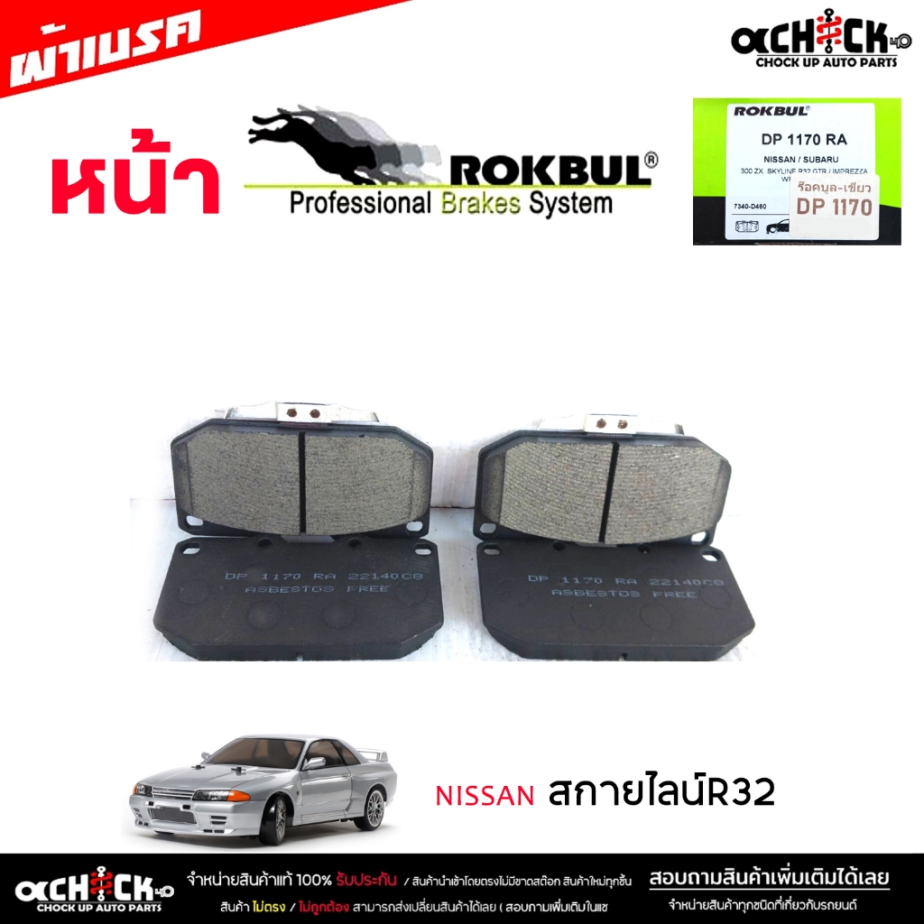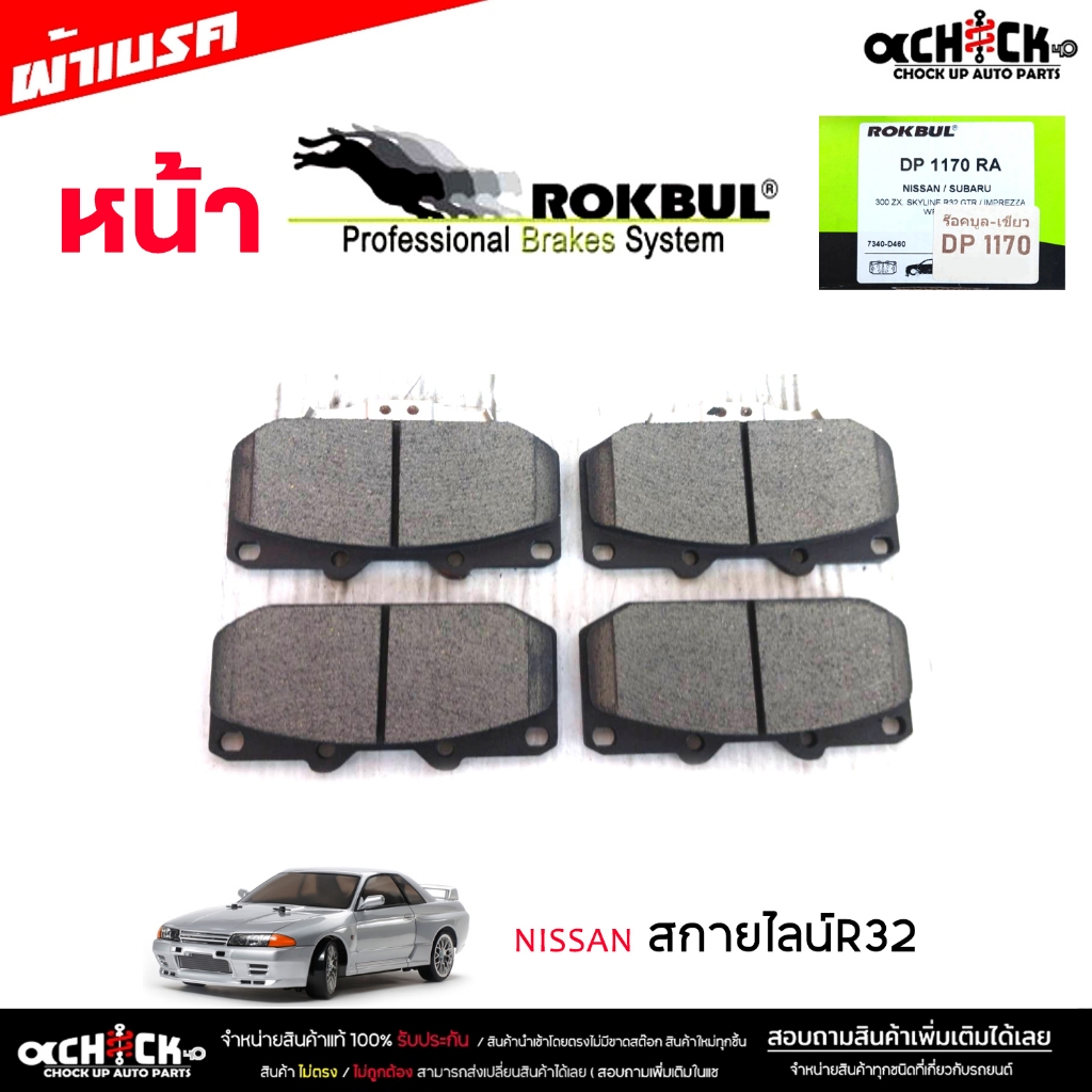 ผ้าเบรค หน้า นิสสัน สกายไลน์R32,อิมเพรสซ่า ยี่ห้อ ROKBUL กล่องเขียว จำนวน 1ชุด DP1170