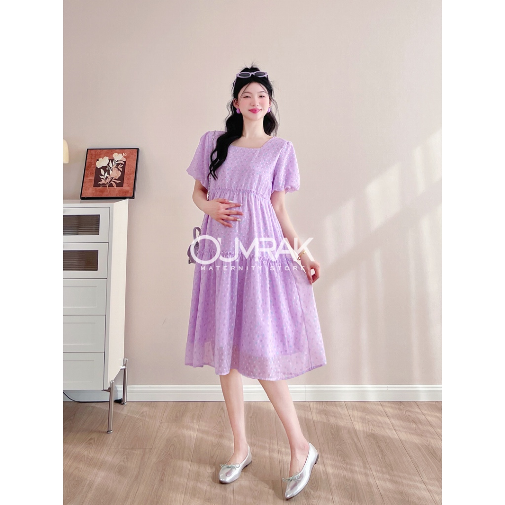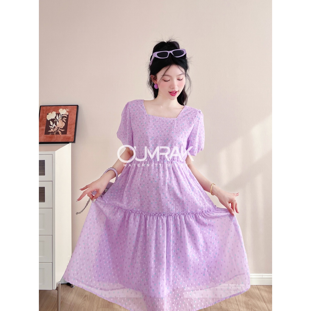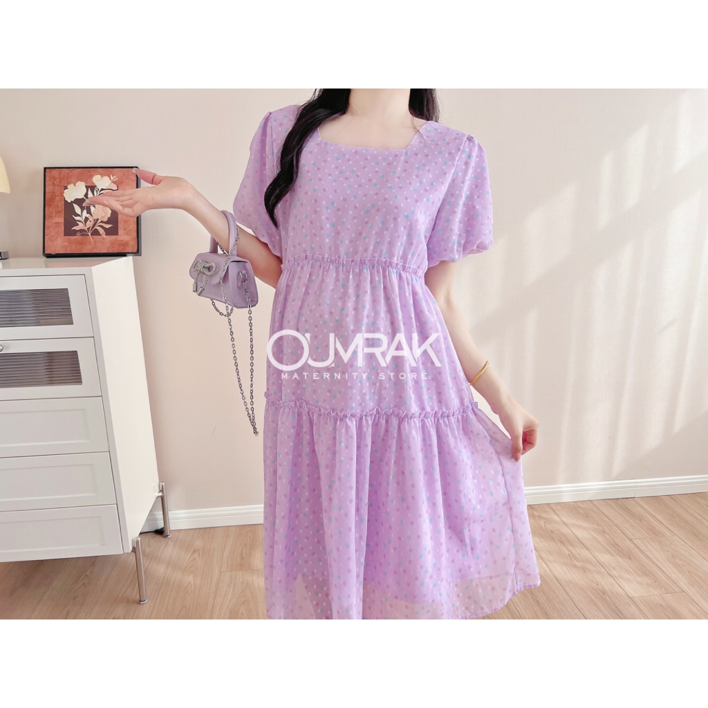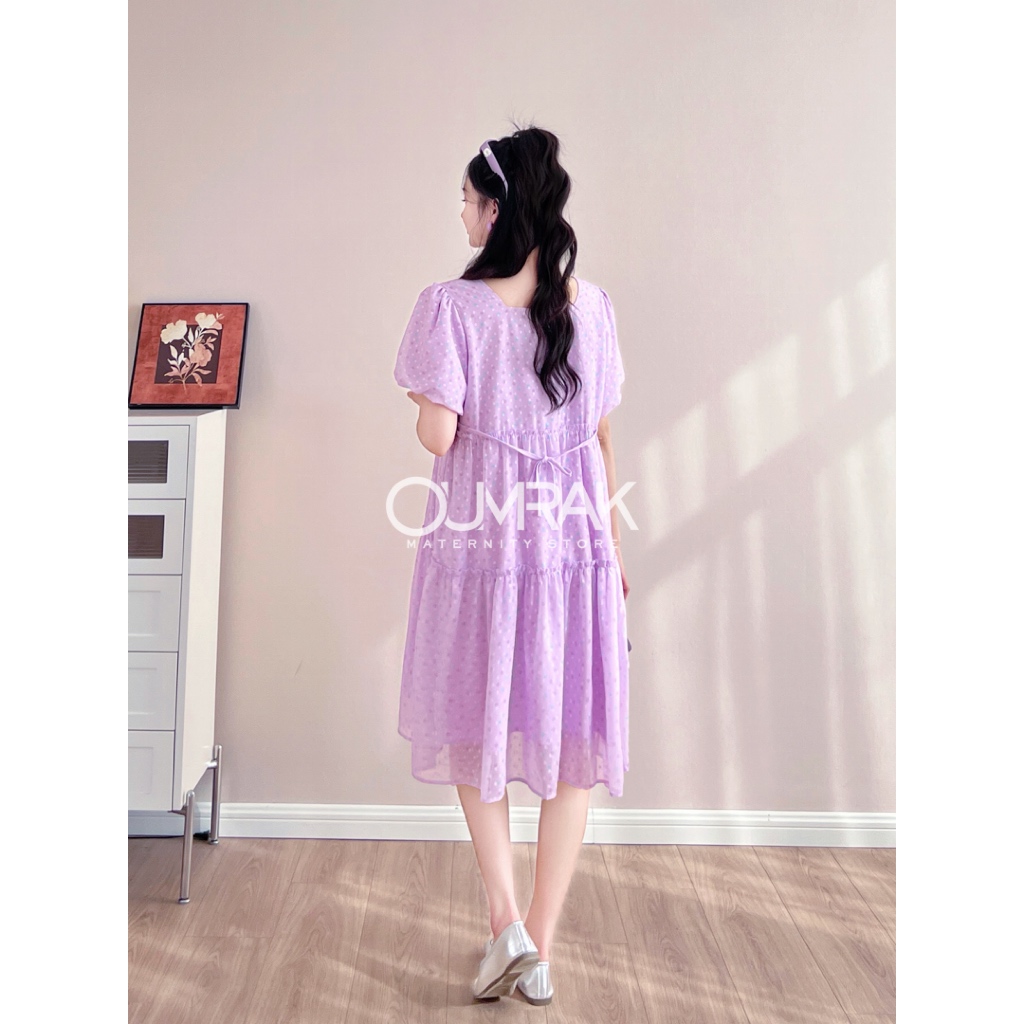 BB1187 ( ไม่ท้องก็ใส่ได้ +ซับใน + สายผูกเอว ) ชุดคลุมท้องแฟชั่นสวยๆ งานผ้าชีฟองพิมพ์ลาย แบรนด์อุ้มรัก