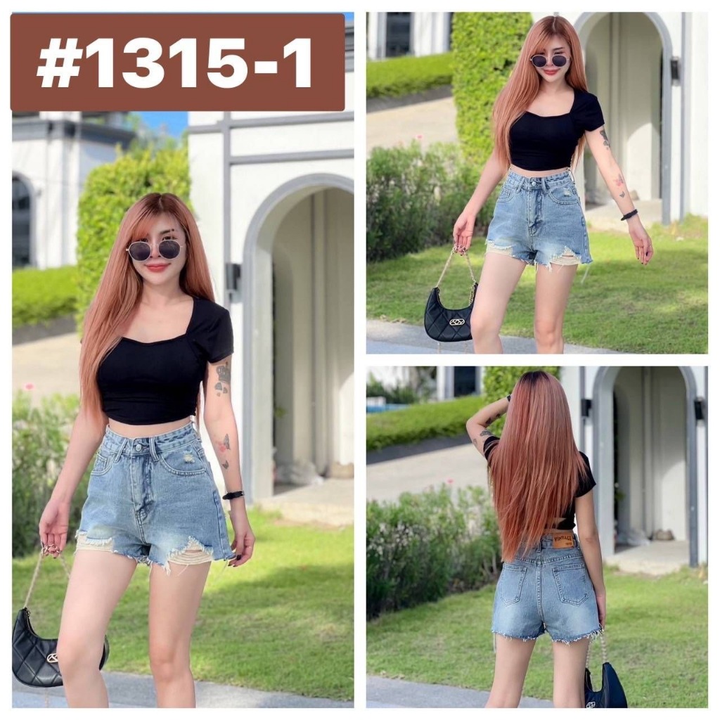 Acasey กางเกงยีนส์ผู้หญิง ขาสั้น ทรงสวย ดีเทลขาดนิดๆ เท่แบบมีสไตล์