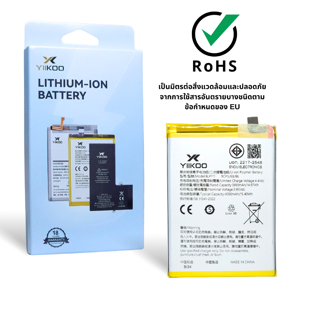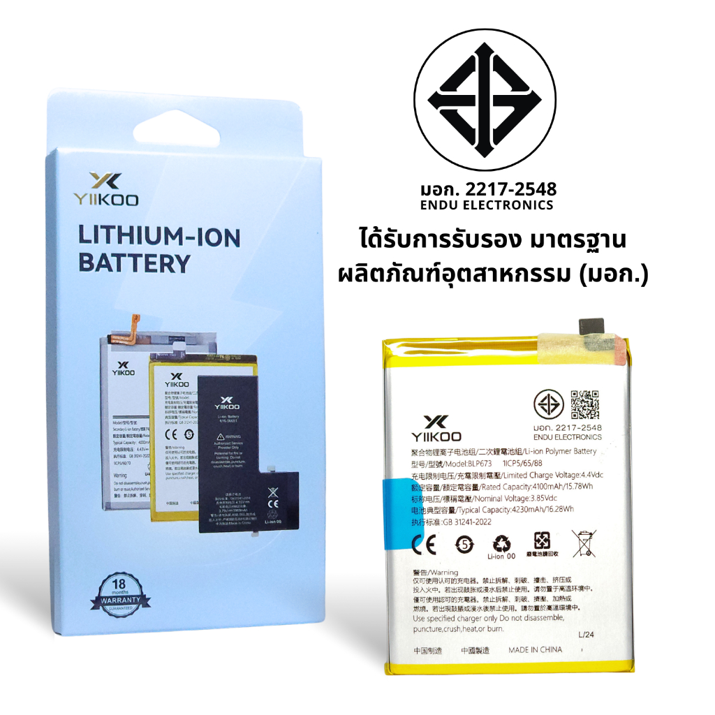 แบตเตอรี่ YIIKOO สำหรับ OPPO A1K/Realme C2/A3/A3S/A5/A5S/A7/A12/A31 รับประกัน18เดือน
