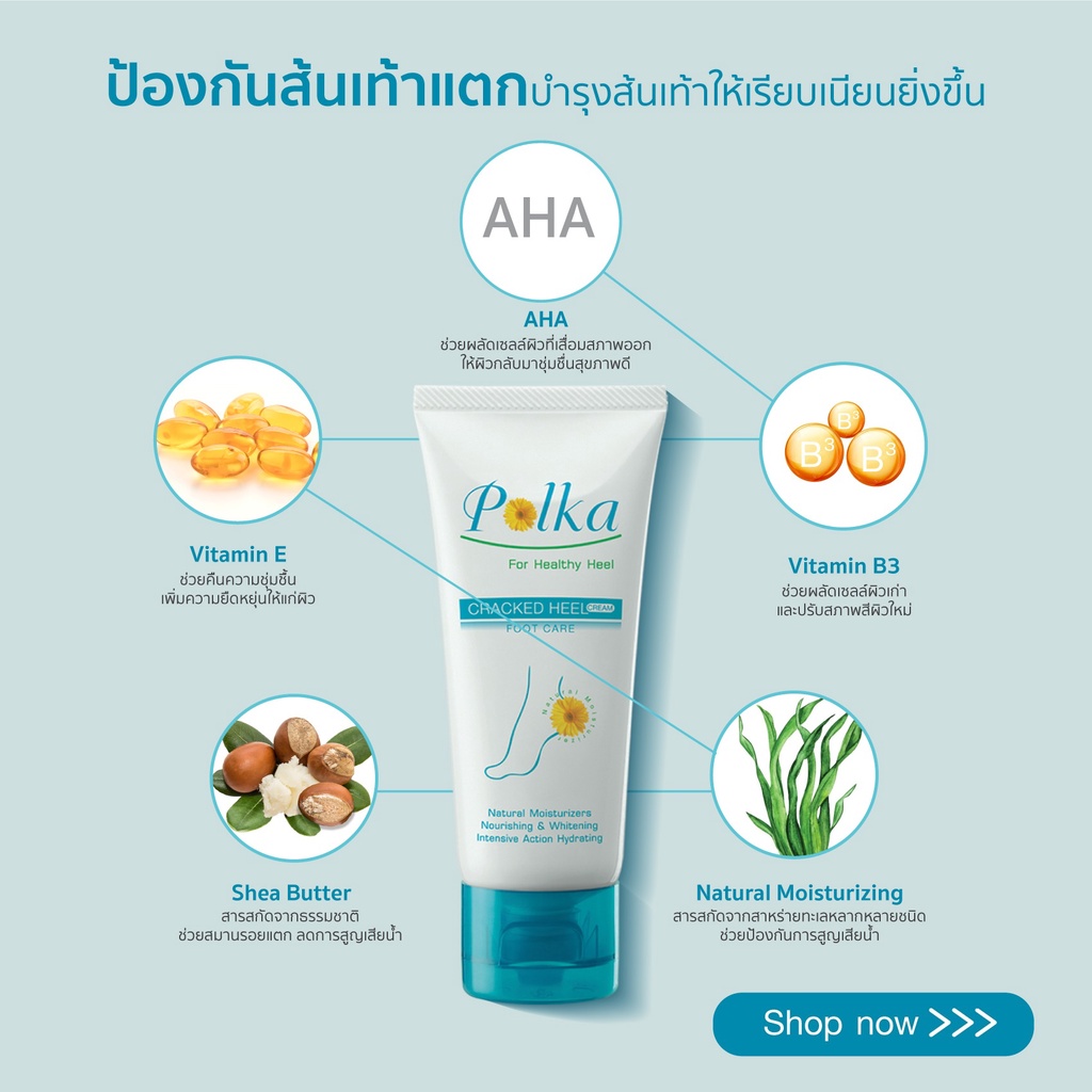 Polka Cracked Heel Cream 60 g. (2 กล่อง) / พอลก้า แครก ฮีล ครีม 60 กรัม (2 กล่อง) ครีมทาส้นเท้าแตก