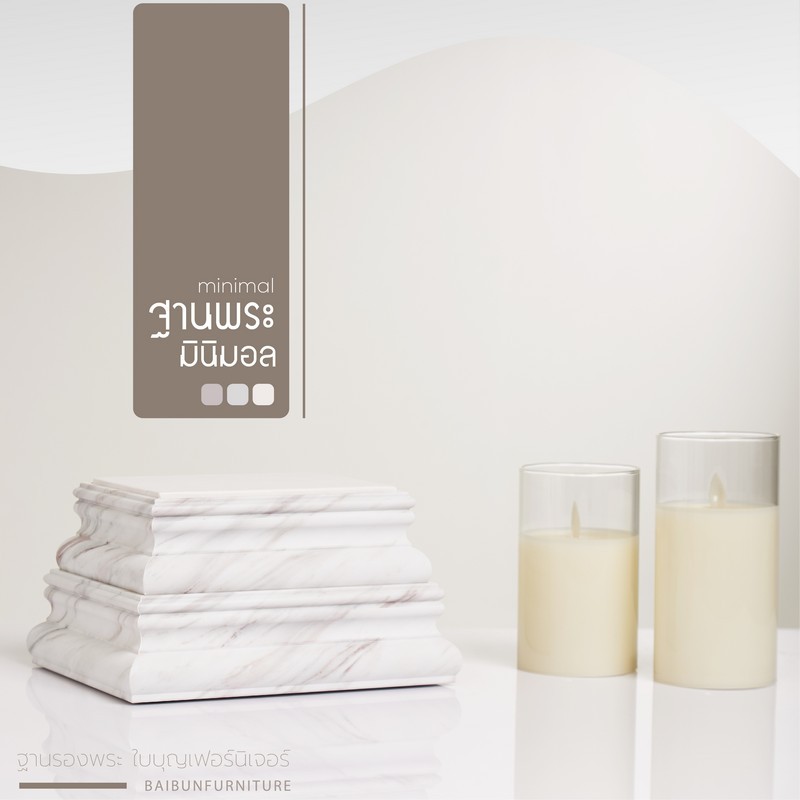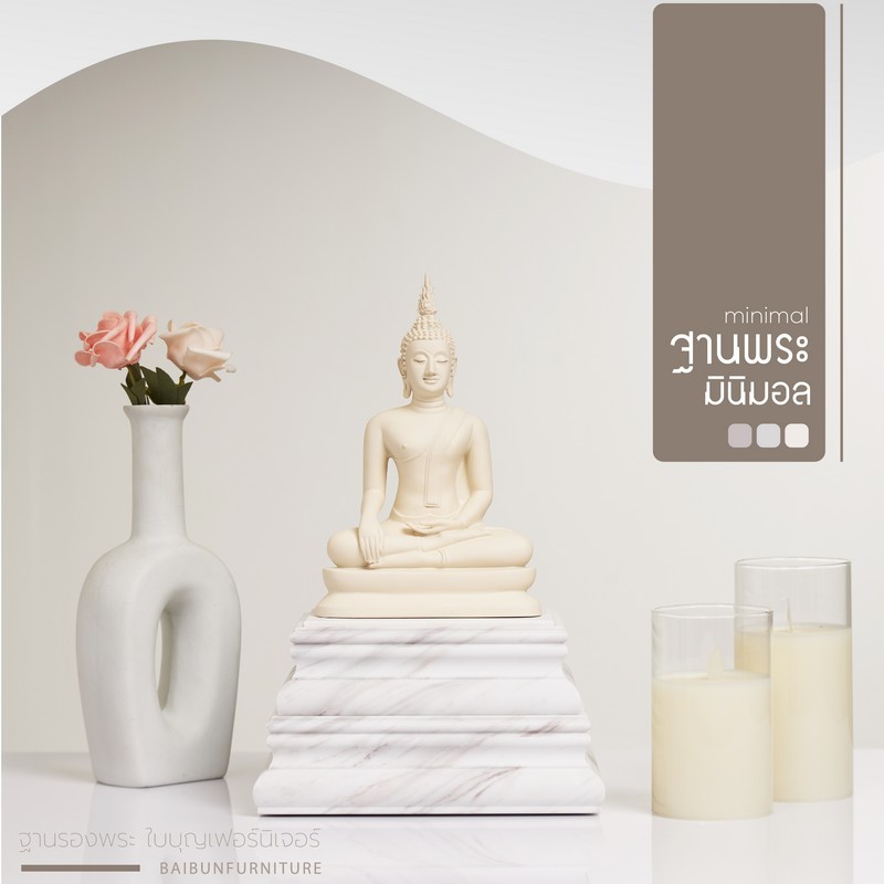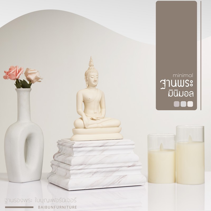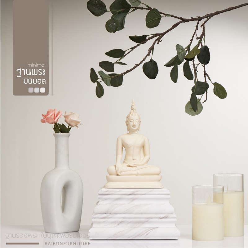 ฐานวางพระ ลายหินอ่อนสีขาว ใบบุญเฟอร์นิเจอร์ ฐานพระสีขาว ฐานพระมินิมอล minimal ฐานสูง 4.5 นิ้ว [ B051-7 ]