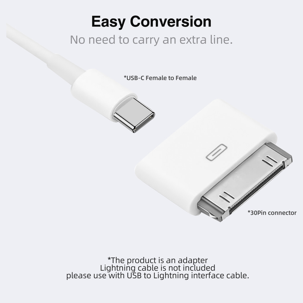 Fonken USB C ถึง 30Pin อะแดปเตอร์ Type-C หญิง 30 Pin ชายชาร์จ Sync Converter สําหรับ iPh 4/4S Pad 2 3 Pod