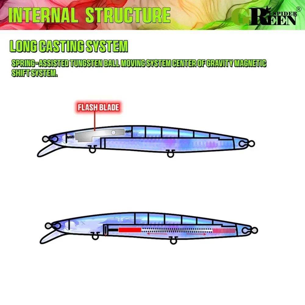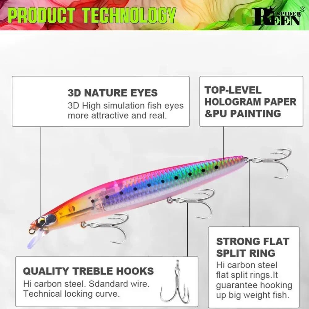 Greenspider ใหม่ UV 145 มม./27g ลอย Minnow Long Casting Hard เหยื่อแฟลชใบมีด Wobbler เหยื่อตกปลา Sea Bass Lure